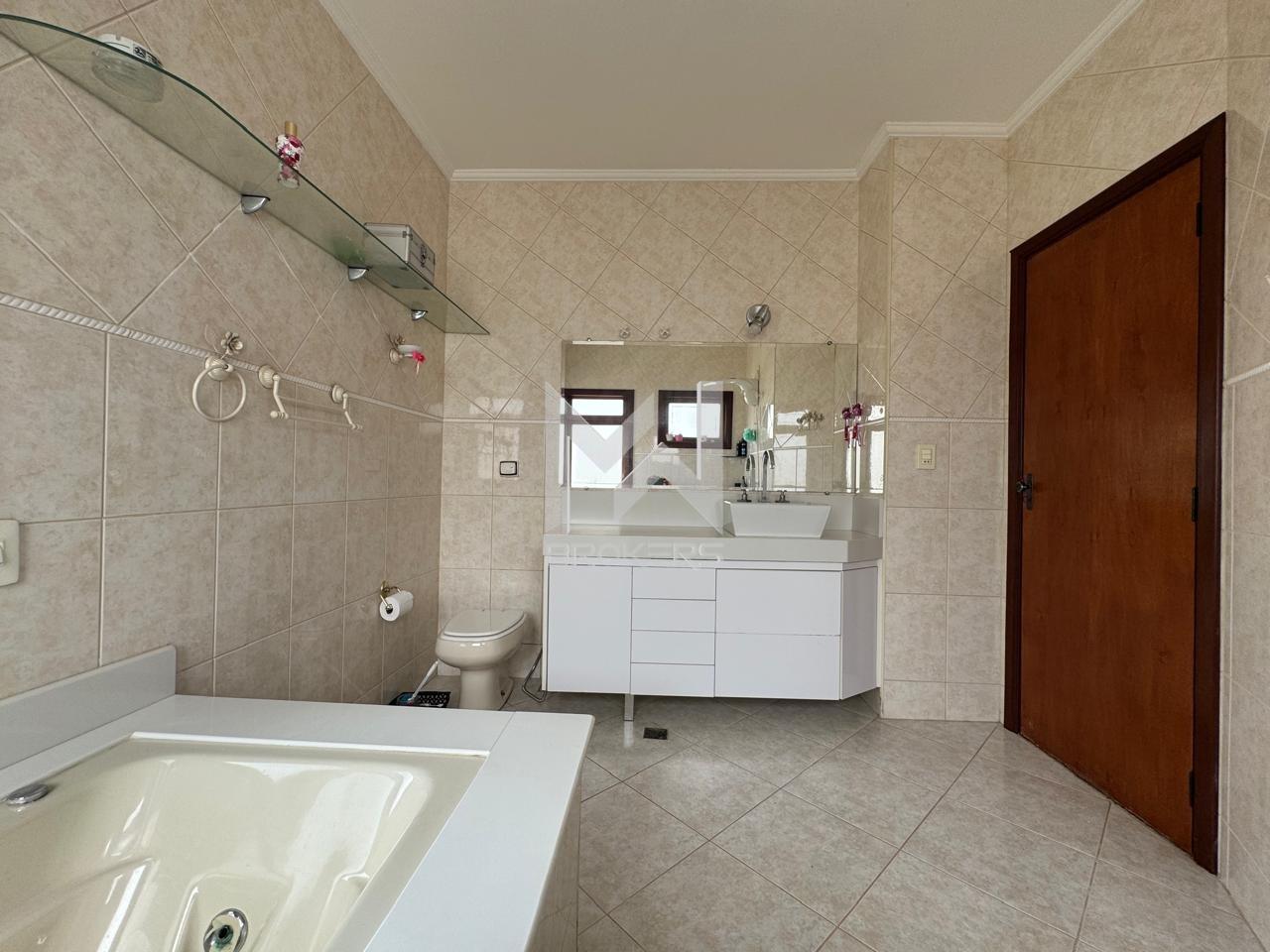 No pavimento superior, sala de TV íntima com sacada, escritório e área íntima com 03 dormitórios, sendo 02 suítes com armários planejados, sacadas envidraçadas e excelente ventilação. A suíte master se destaca pelo amplo closet e pela banheira.