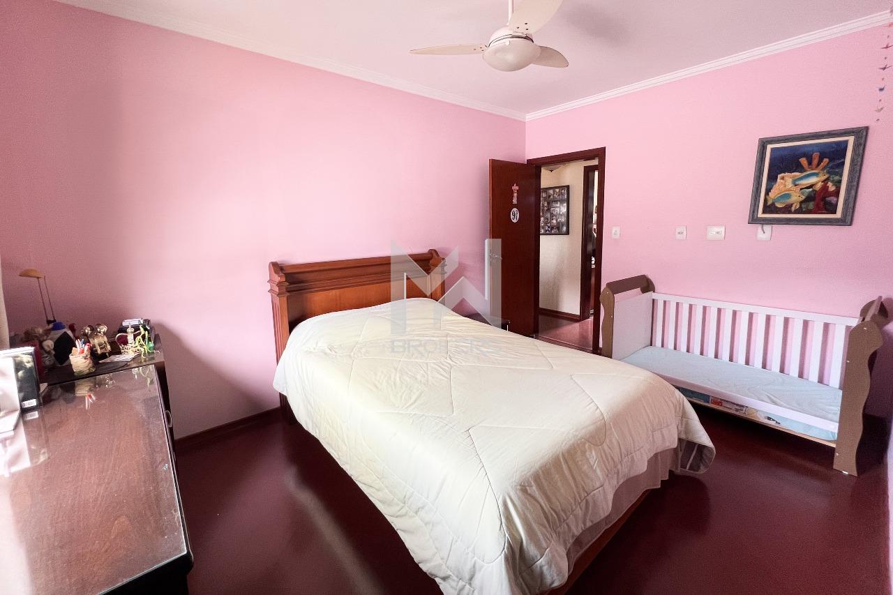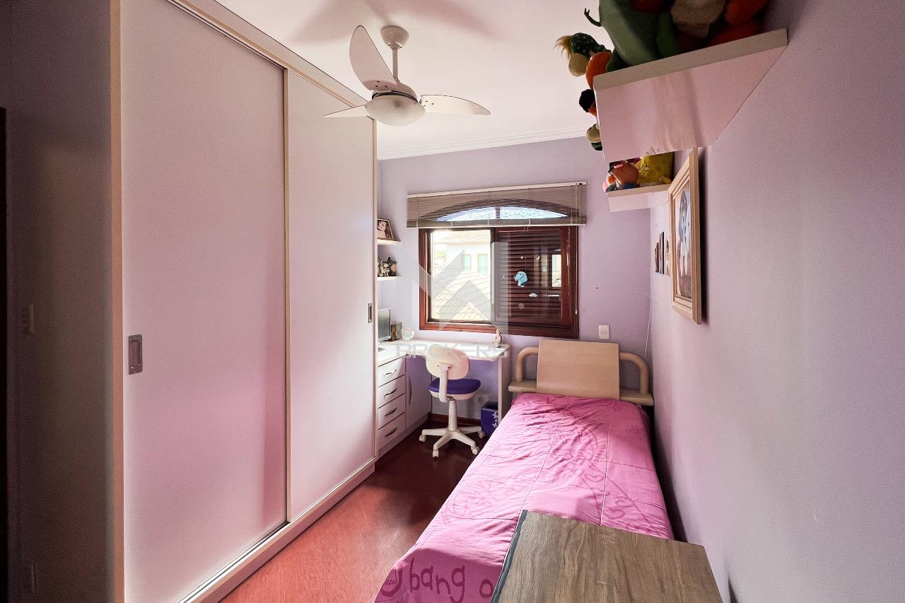 No pavimento superior, o imóvel possui duas suítes com armários e sacada, sendo a suíte principal com closet e banheira de hidromassagem, além de mais dois dormitórios.