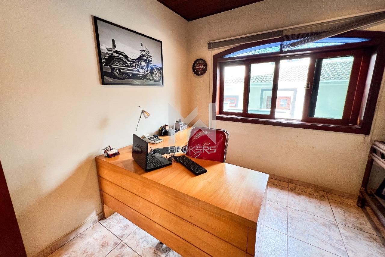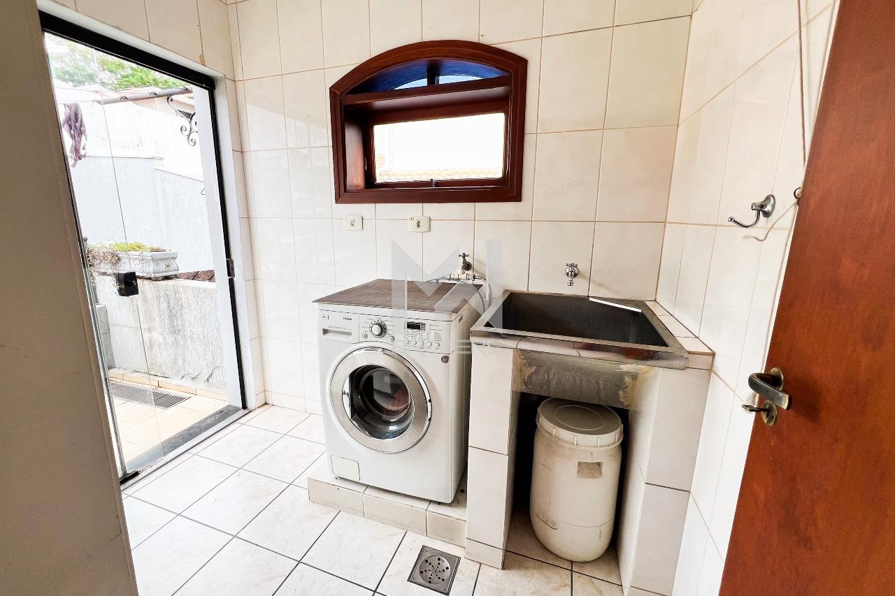 No piso térreo, o imóvel dispõe de garagem ampla, além de um depósito que pode ser utilizado como bicicletário ou espaço para ferramentas. No primeiro pavimento, há sala de estar com sistema de som integrado e telão embutido, lavabo, sala de jantar, um dormitório que pode ser utilizado como escritório, cozinha com armários planejados, despensa e área de serviço.