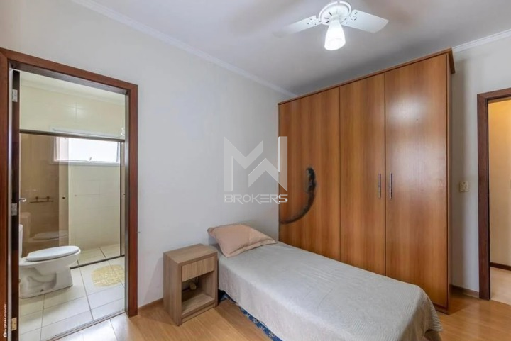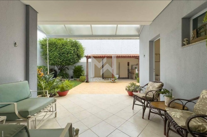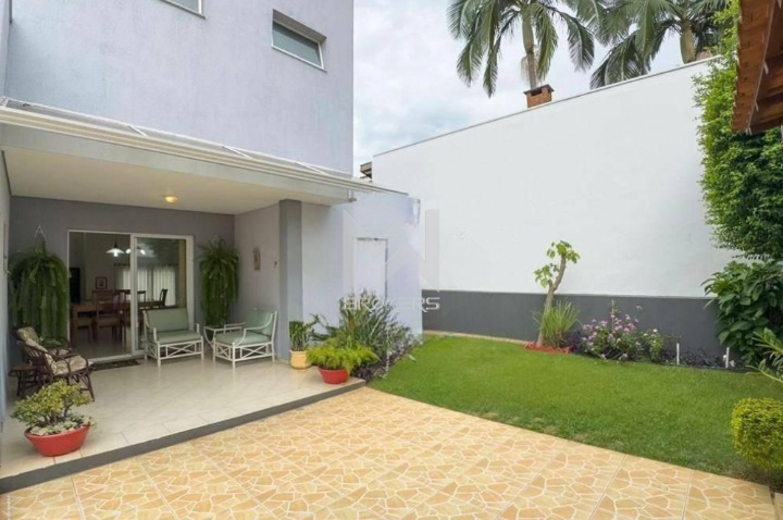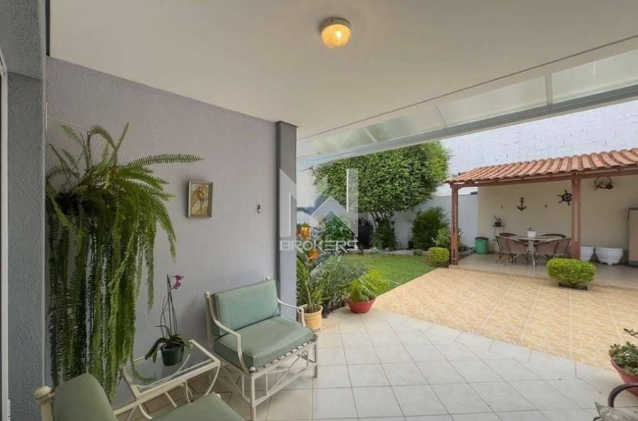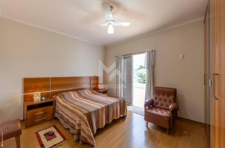 A casa conta com 4 dormitórios, sendo 1 suíte no pavimento térreo e, no pavimento superior, mais 3 dormitórios, todos suítes e closet.