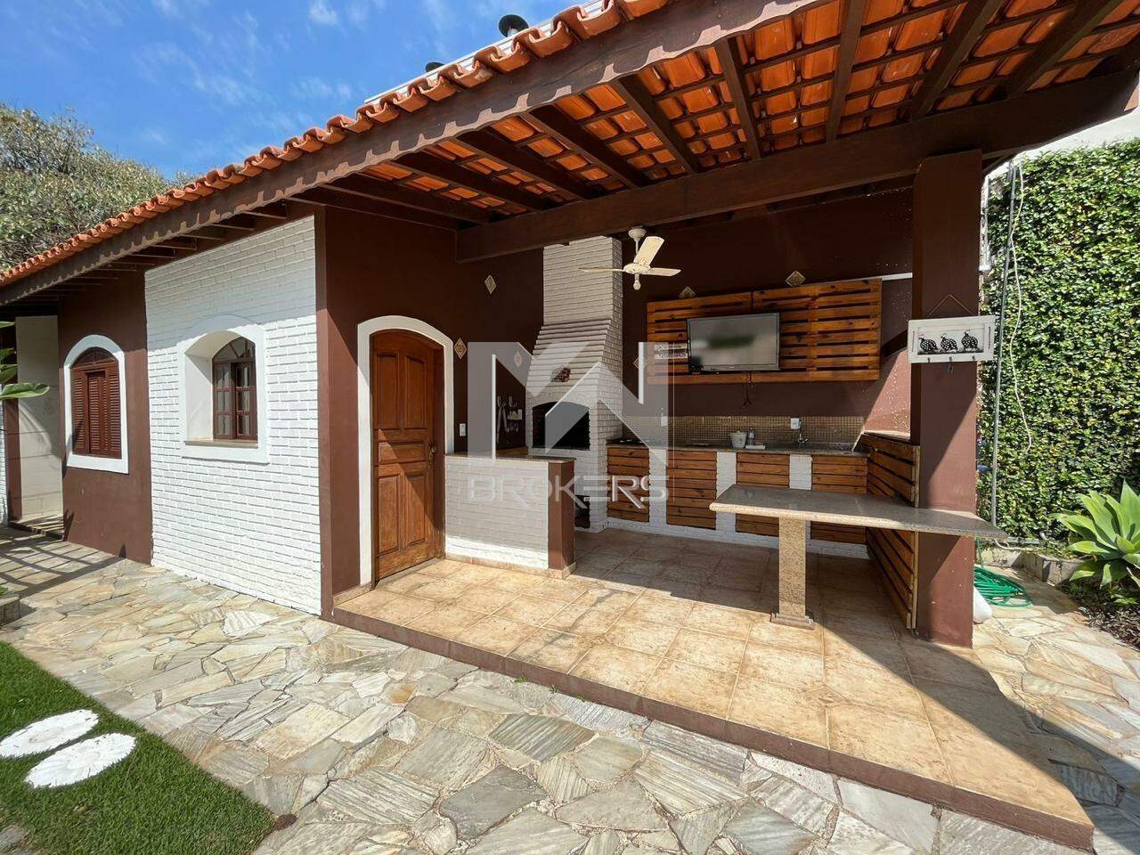 Na área gourmet, além da churrasqueira para momentos de descontração, há também uma sala de apoio. Para maior praticidade, o imóvel conta com uma edícula que inclui área de serviços, depósito, dormitório e banheiro para funcionários.