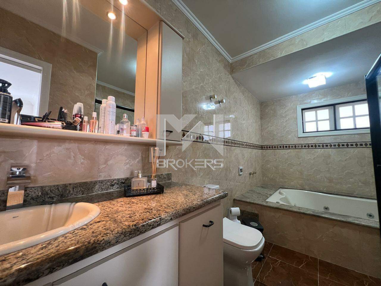 Para acesso ao pavimento superior, 6 degraus, sala íntima e 03 dormitórios, sendo 01 suíte com closet duplo e hidro.