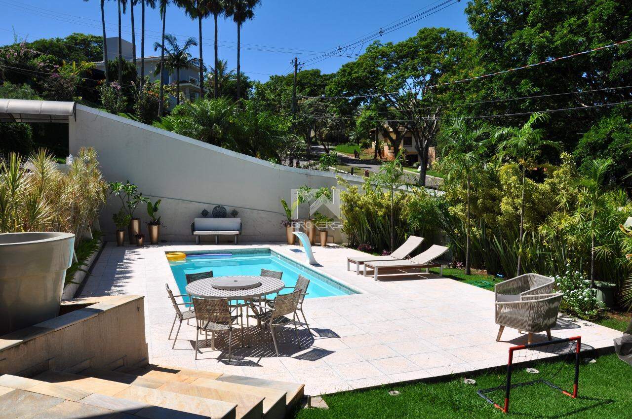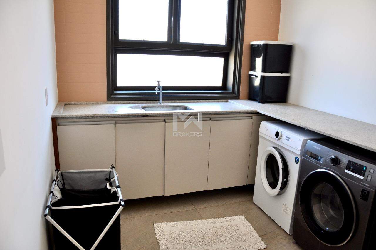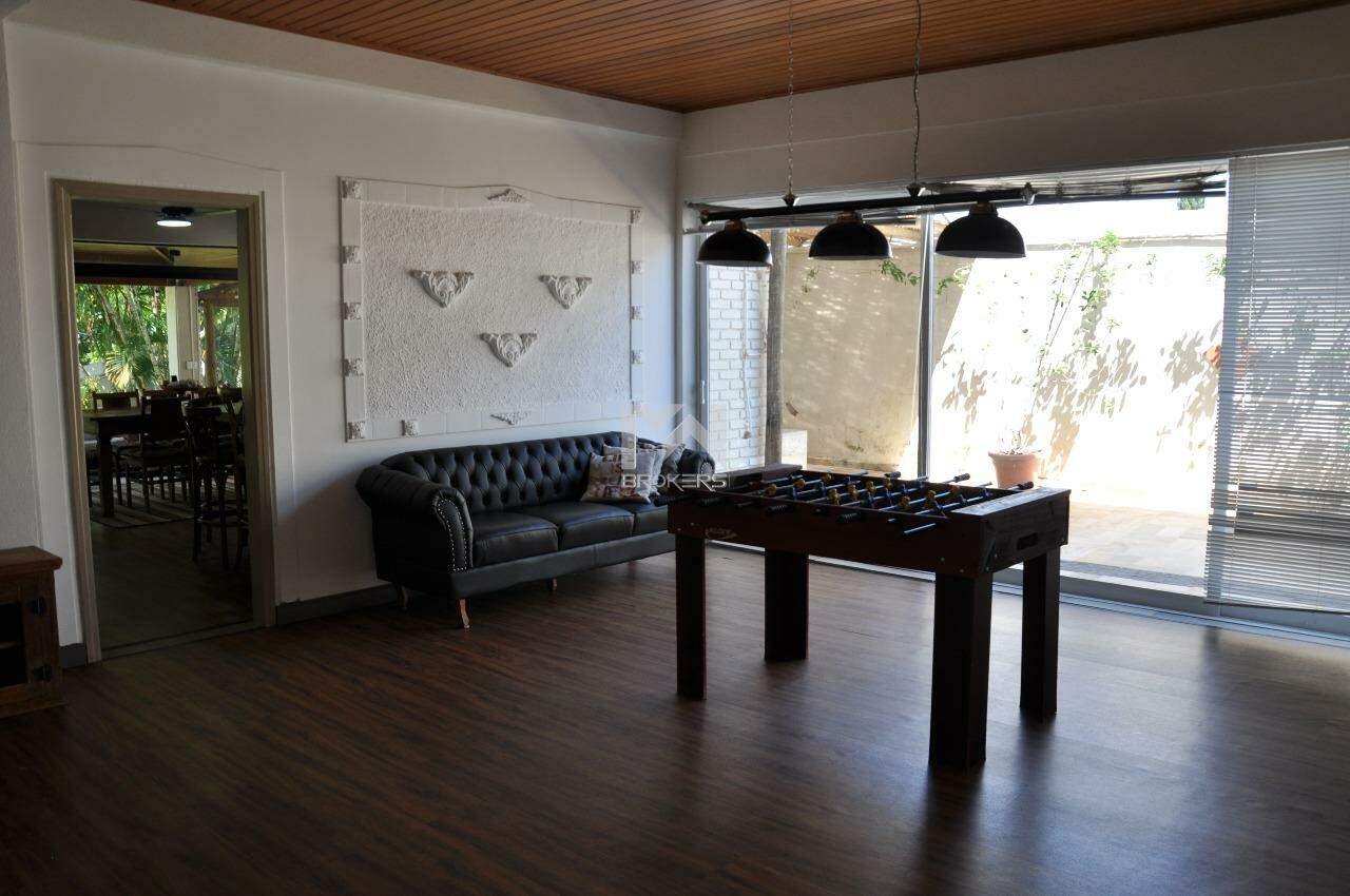 No pavimento inferior, sala de TV, brinquedoteca, área gourmet com churrasqueira, sala de descanso, sala de jogos com pebolim e sinuca, lavabo, suíte de visitas, piscina aquecida e fire pit.