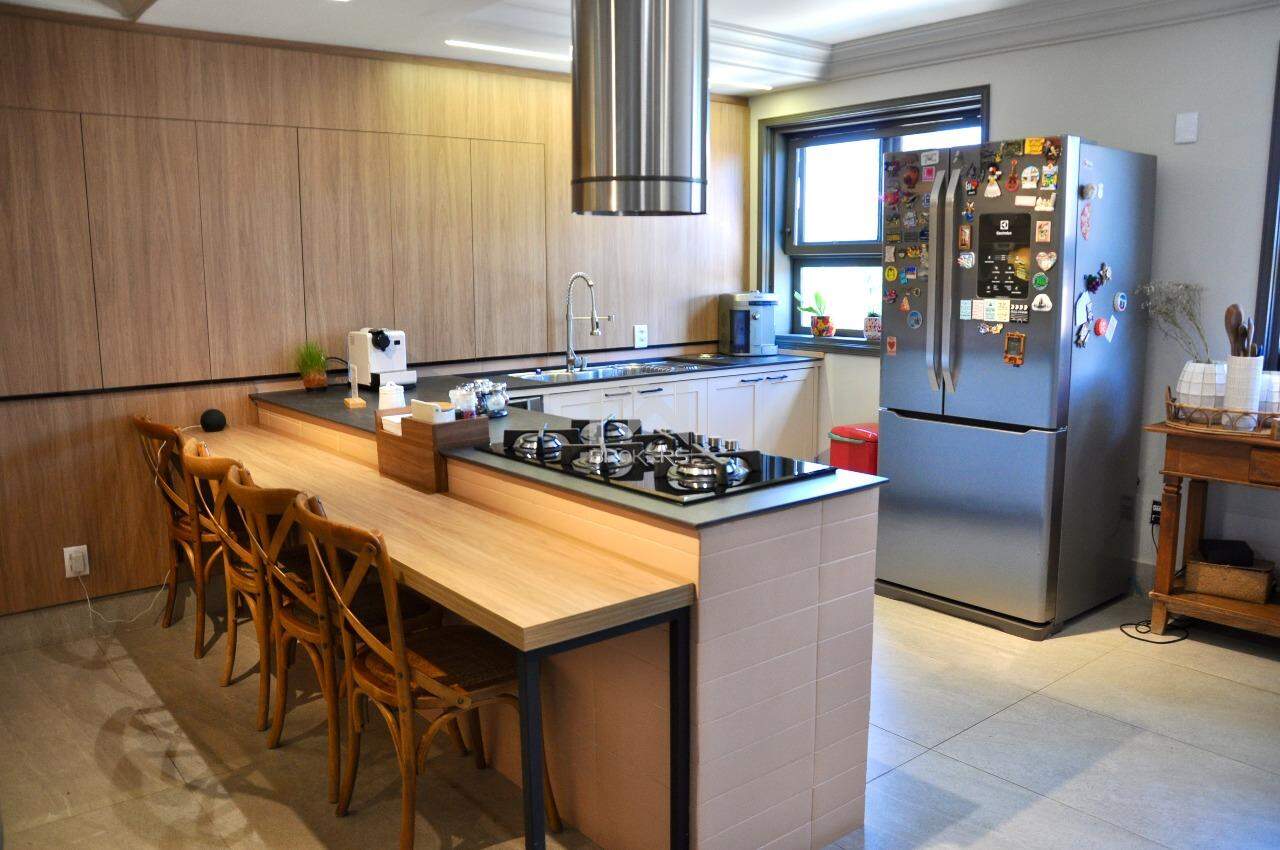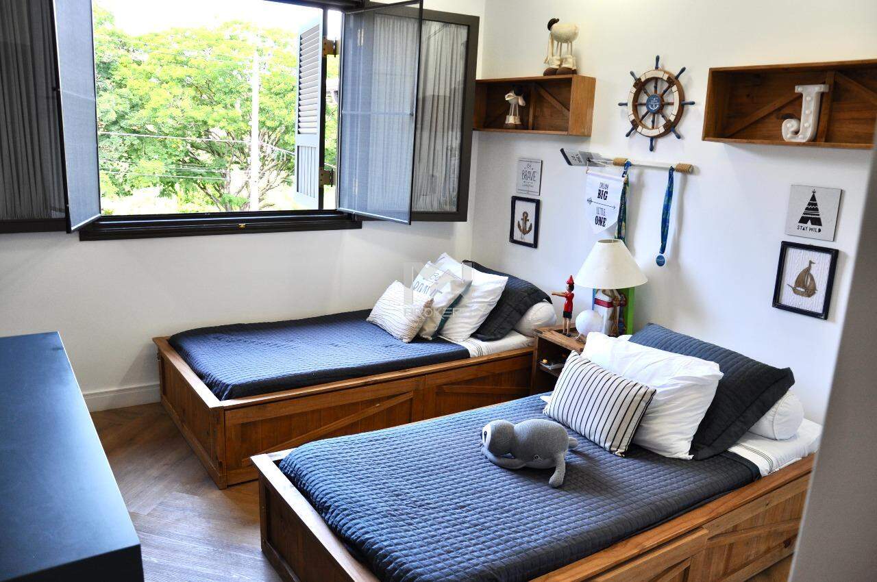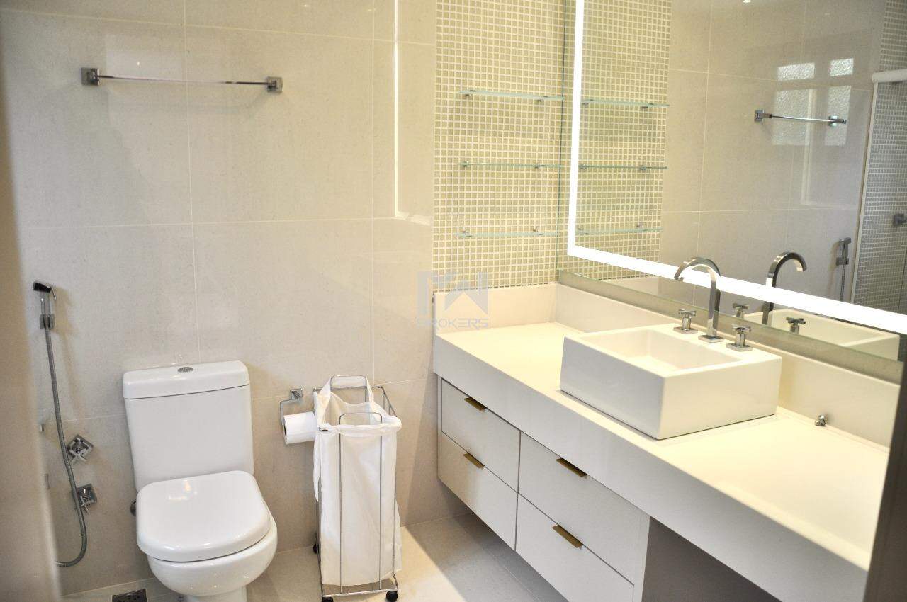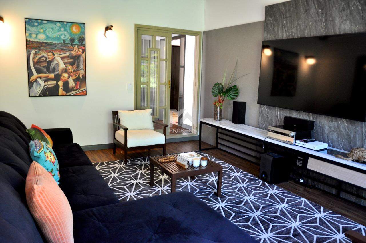 No pavimento inferior, sala de TV, brinquedoteca, área gourmet com churrasqueira, sala de descanso, sala de jogos com pebolim e sinuca, lavabo, suíte de visitas, piscina aquecida e fire pit.
