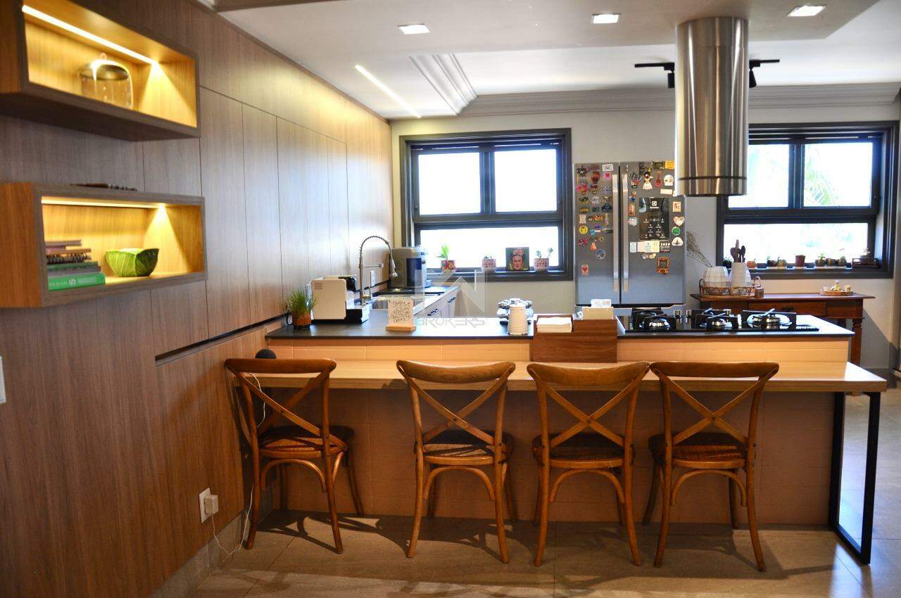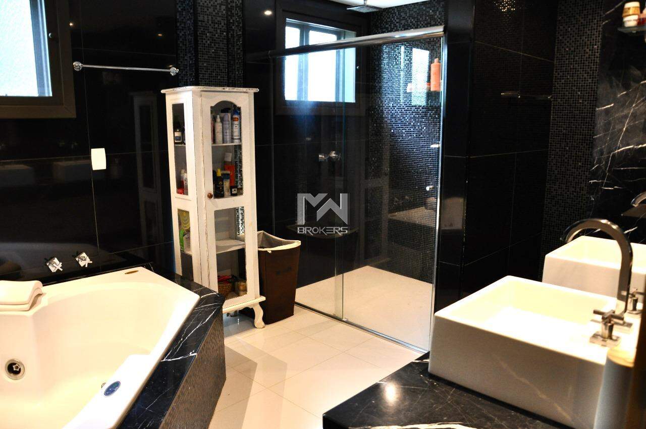 Sala de estar, sala de visita com vista para o lago, sala de refeições integrada à cozinha, despensa, lavabo, sala de almoço, escritório e 03 dormitórios, todos suítes, sendo a master com closet e banheira Jacuzzi, com duchas e cubas duplas.