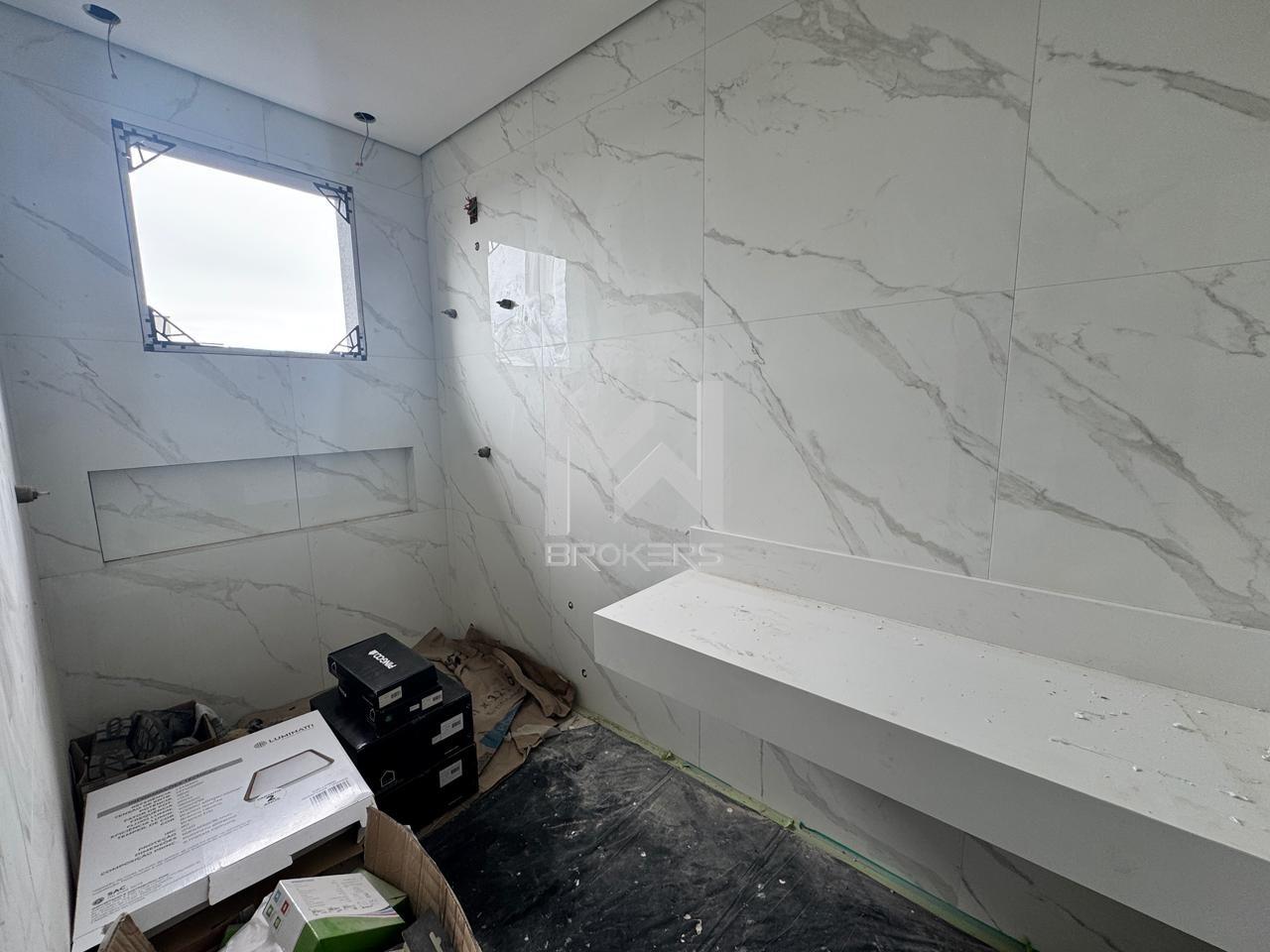 No pavimento superior, área íntima, 03 dormitórios, todos suítes com janelas automatizadas, sendo a suíte master com amplo closet e banheiro equipado com pias e chuveiros duplos.