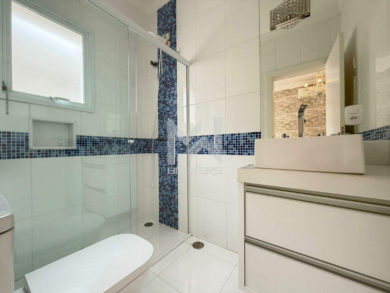 No pavimento superior, com acesso por escadas ou elevador, escritório e área íntima com 03 dormitórios, todos suítes, sendo uma master com duplo closet e hidro.