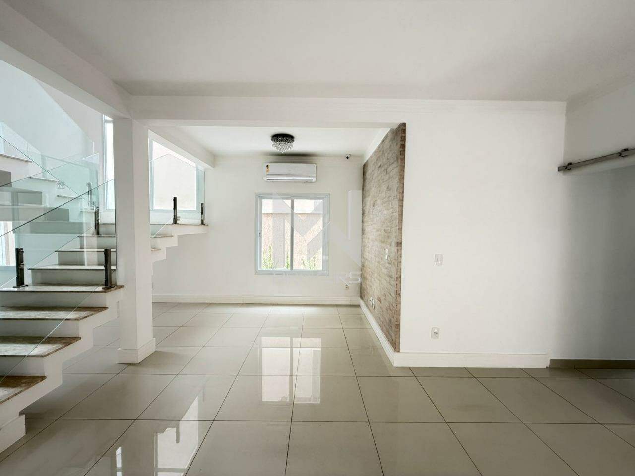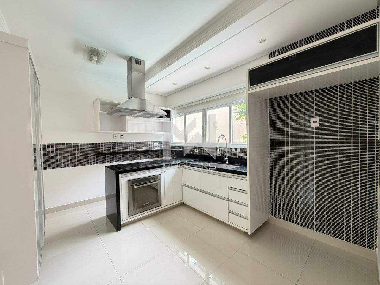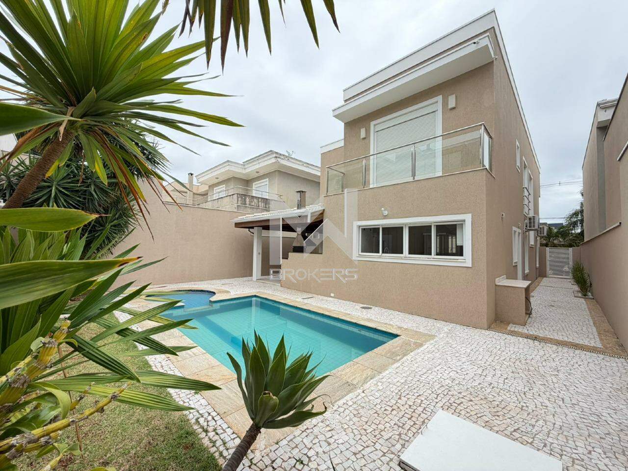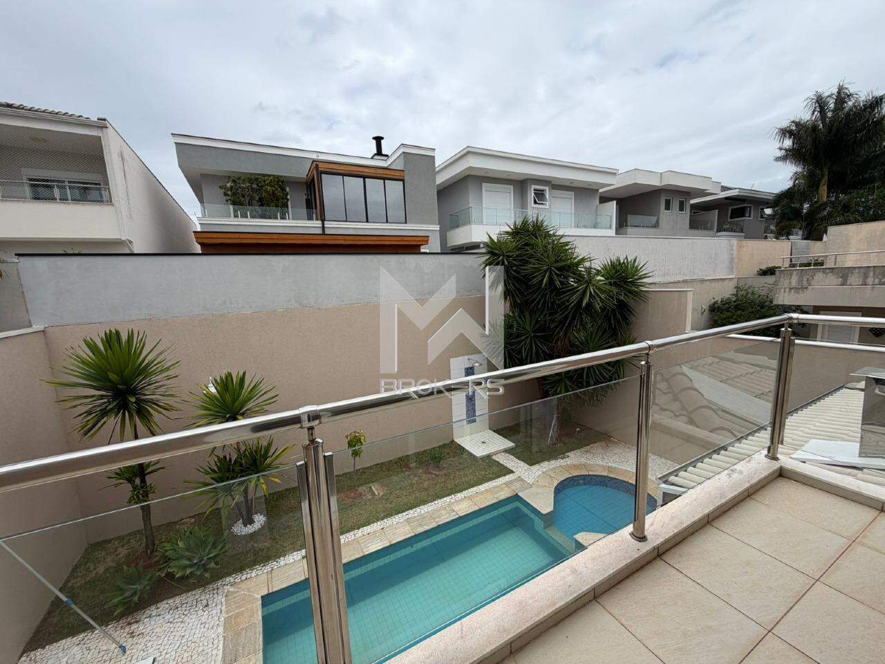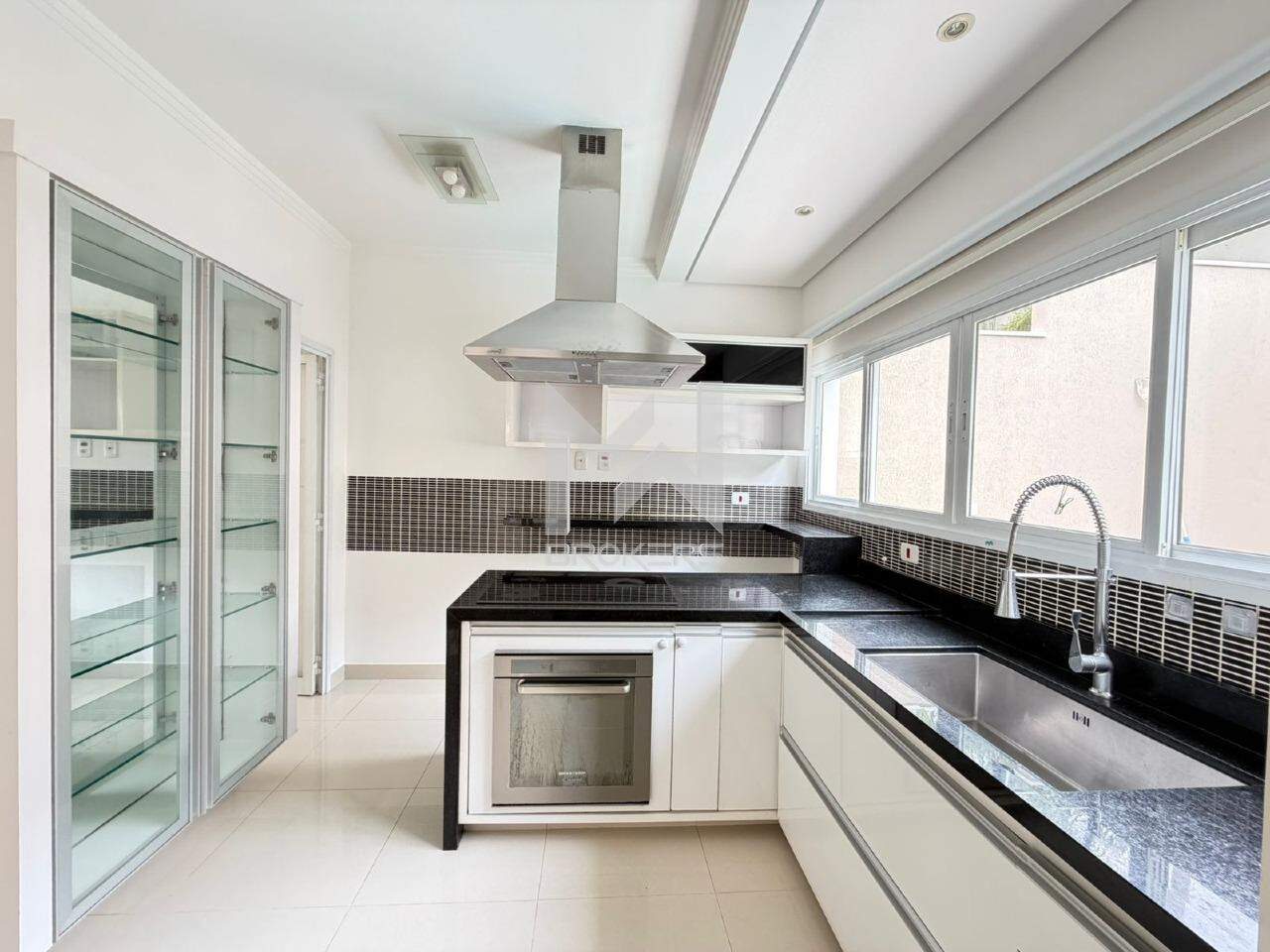 Sala de estar, sala de TV e sala de refeições integradas, lavabo, cozinha com cooktop de indução, área de serviços e área gourmet com churrasqueira integrada ao quintal com gramado, piscina (não aquecida) e depósito.