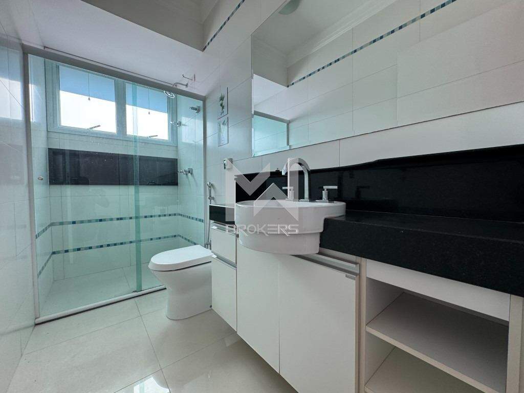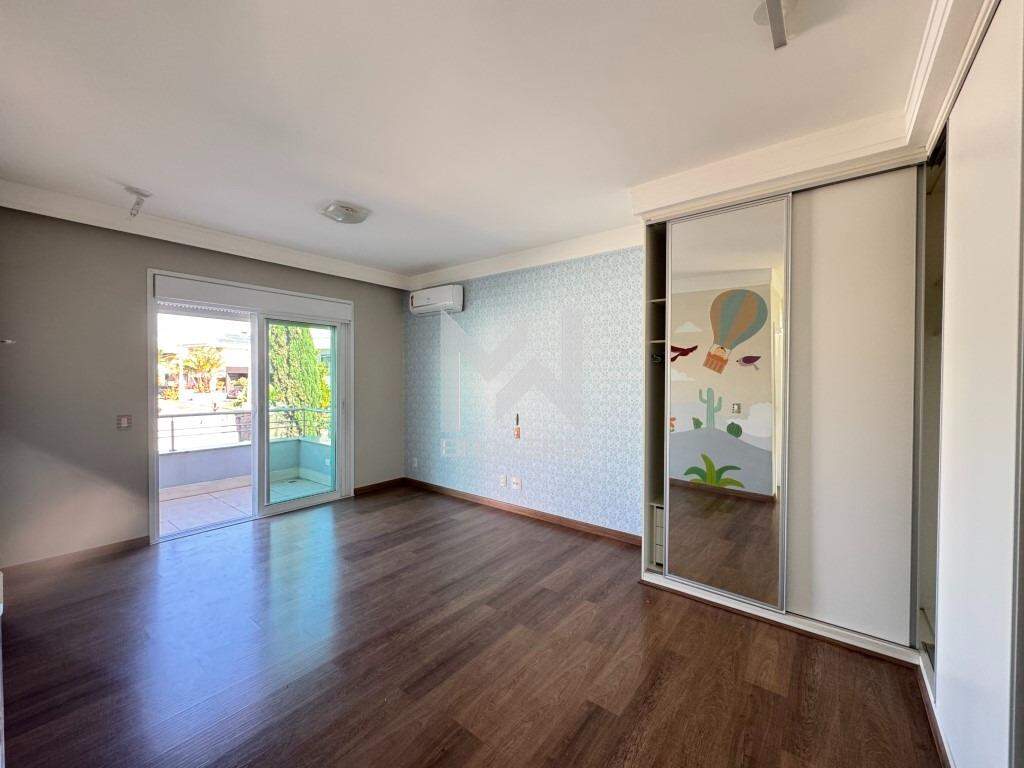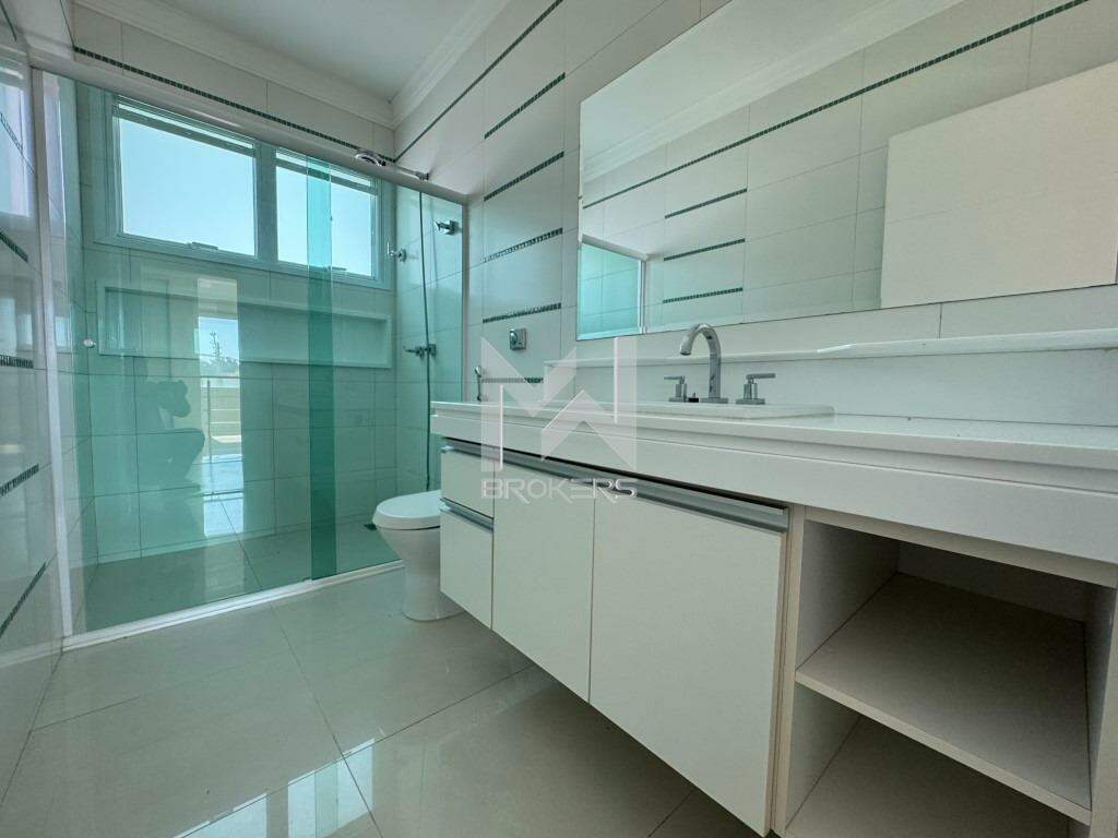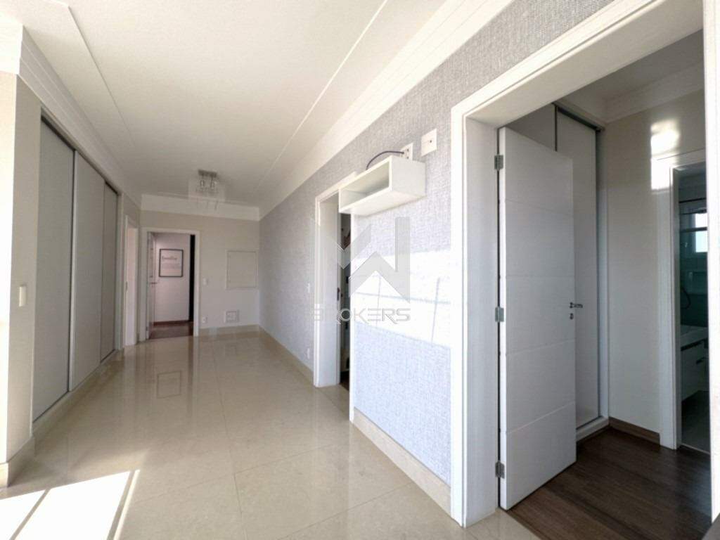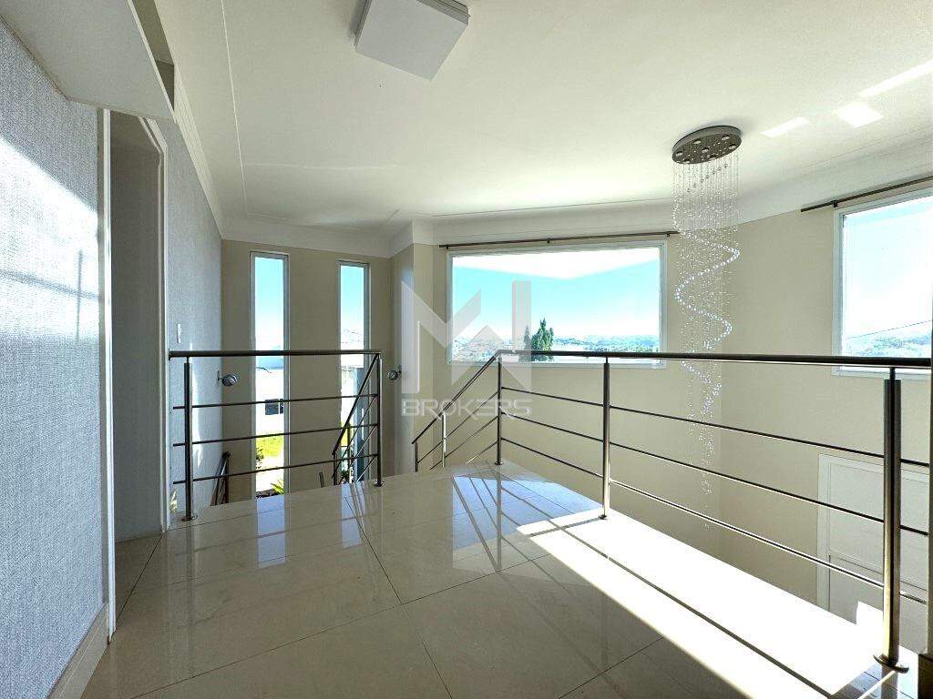 No pavimento superior, hall com rouparia que liga os 4 dormitórios, todos suítes. As 2 suítes do fundo possuem varanda compartilhada. A suíte de hóspedes possui banho híbrido (elétrico ou boiler) com sacada frontal interligada com a suíte máster. A suíte máster é enorme e possui closet duplo com sapateira para mais de 300 pares de sapato e banheiro com cuba dupla e hidromassagem.