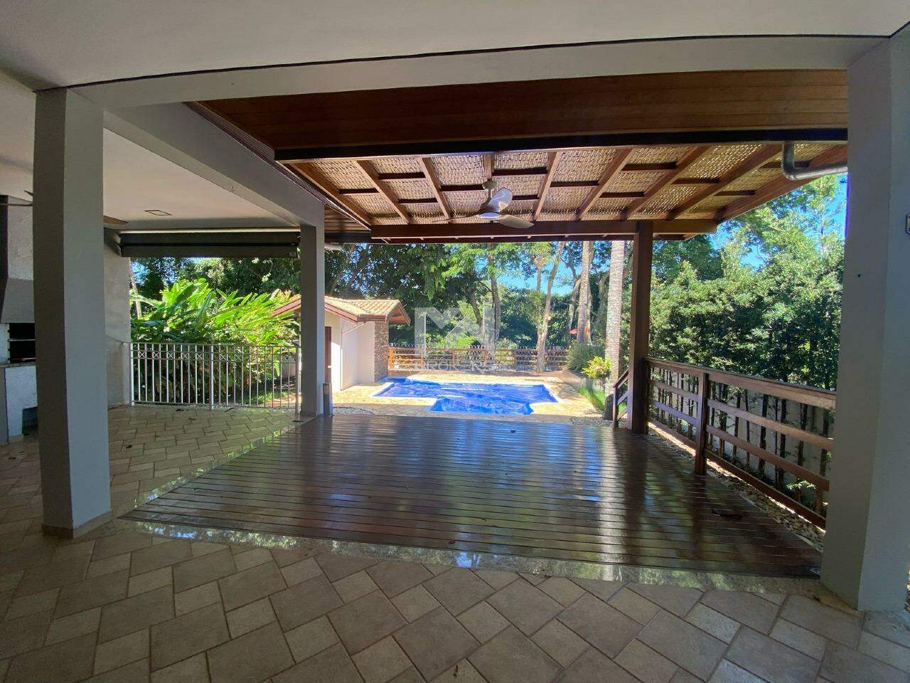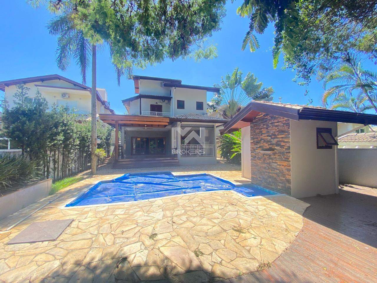 Possui sala de estar com lareira, lavabo, cozinha ampla com armários novos, uma linda área gourmet integrada a cozinha, quintal gramado, banheiro externo e piscina aquecida.