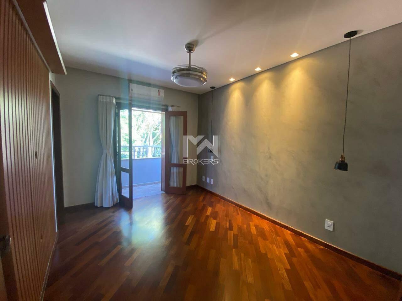 A casa possui 8 ventiladores moderno com controle remoto e 3 ares-condicionados .