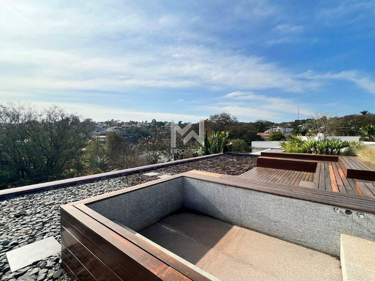 São 04 suítes, sendo a master com closet e saída para SPA e fogo de chão, aquecimento solar, ar condicionado, sala 02 ambientes, lavabo, escritório, jardim de inverno, cozinha, despensa, área de serviço, SPA, piscina com borda infinita e área gourmet com churrasqueira.