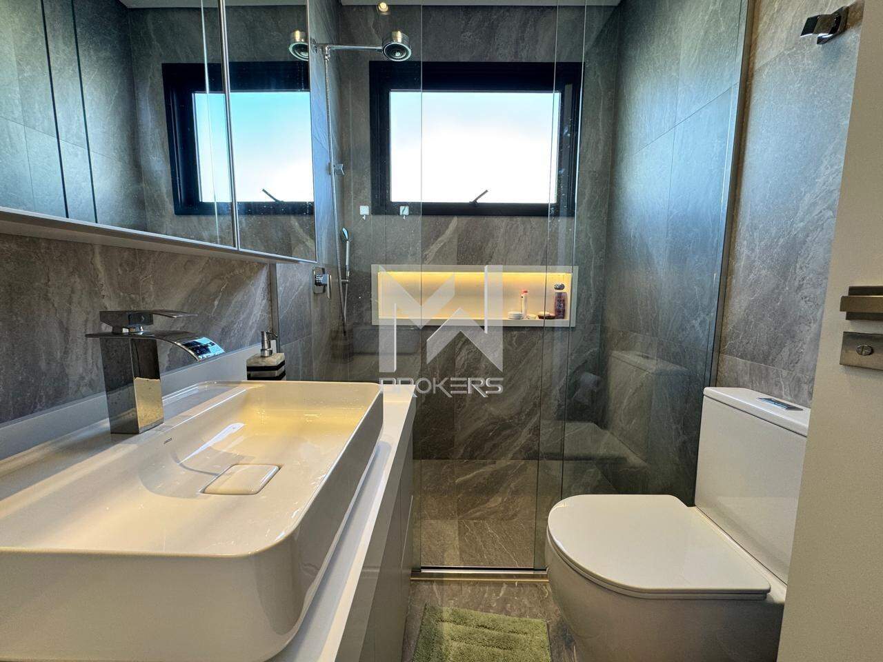 A cozinha é equipada com armários de alto padrão, torre com forno e micro-ondas, cooktop, exaustor e 02 despensas. A área gourmet possui fechamento em vidro, ar-condicionado, churrasqueira a gás e carvão, armários e cooktop, ideal para receber convidados.