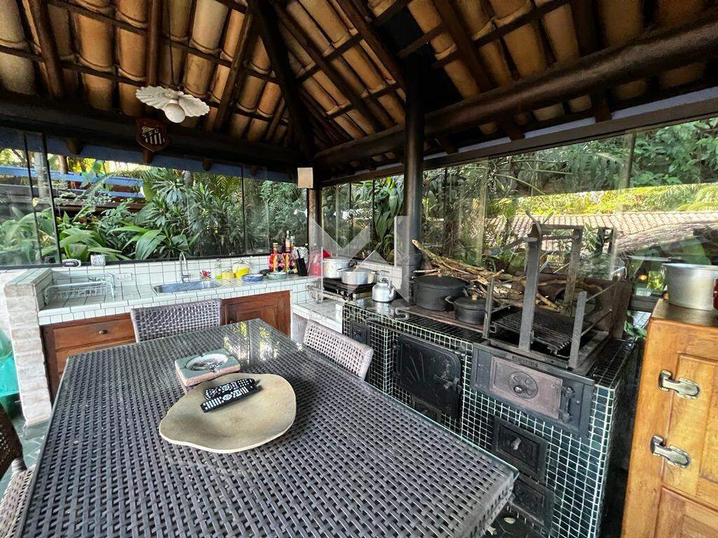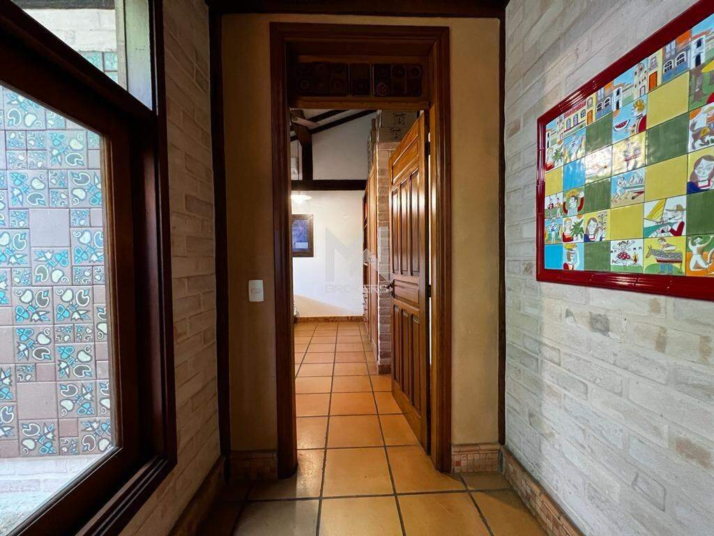 Imóvel com pé direito alto, com vista em quase todos os cômodos, com três salas: refeições, estar e de TV, sendo uma com lareira, cozinha americana com bar integrada, lavabo, três dormitórios com armários, sendo duas suítes e a master com área íntima e varanda, área de serviços com banheiro de doméstica e deck amplo com churrasqueira, fogão e forno a lenha e banheiros de apoio.
