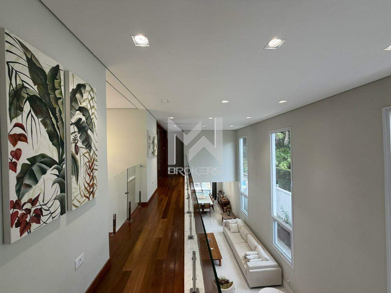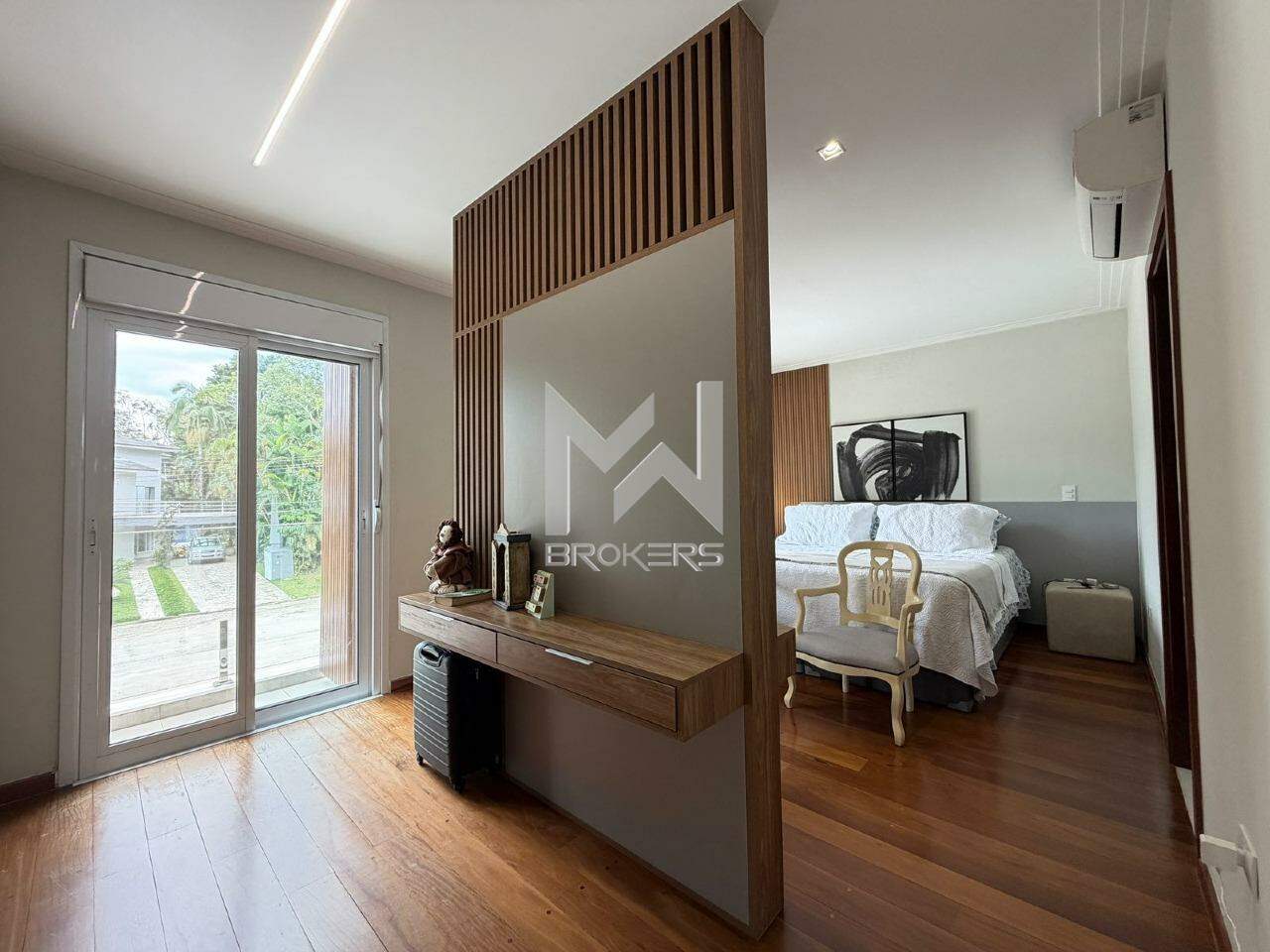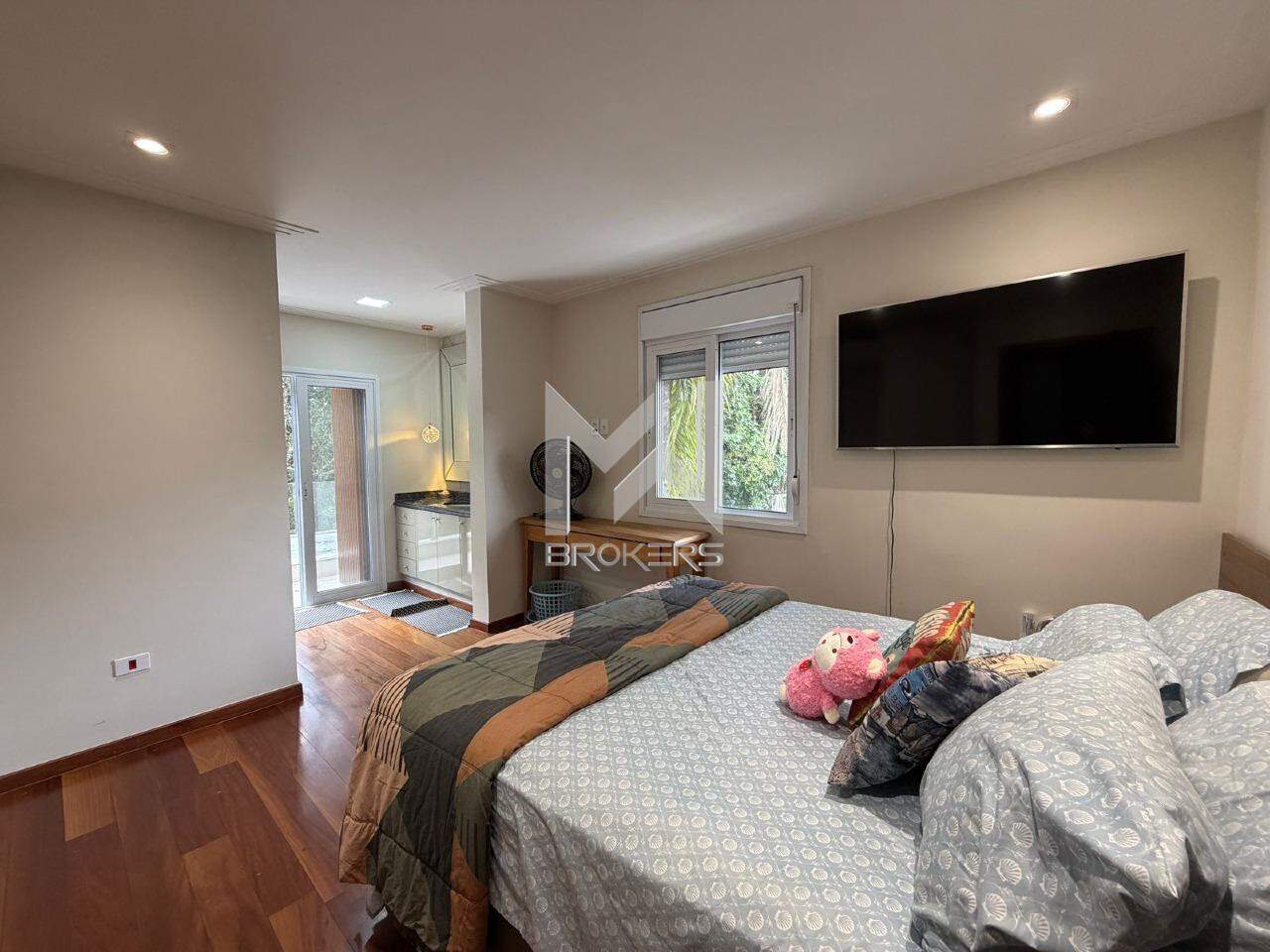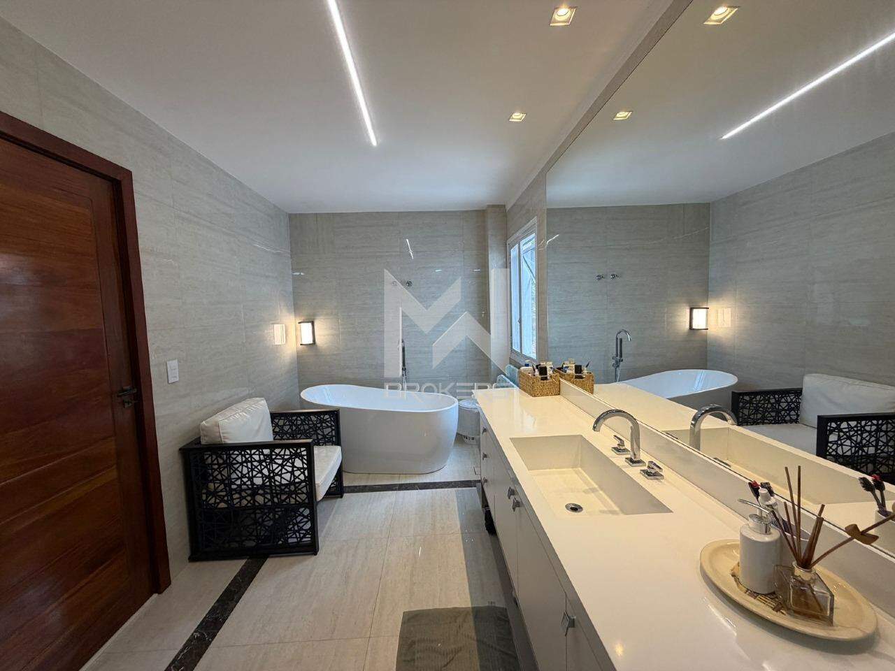 No pavimento superior, área íntima com 04 dormitórios, todos suítes, sendo uma reversível em escritório e uma master com banheira de imersão.