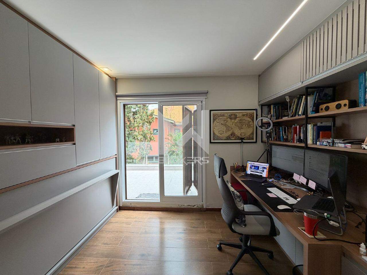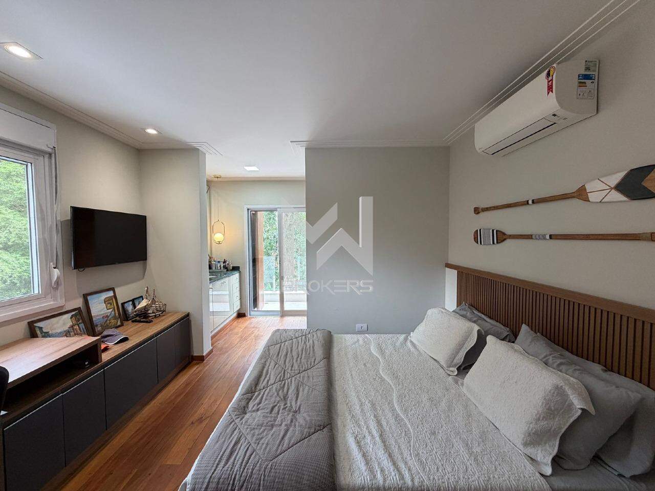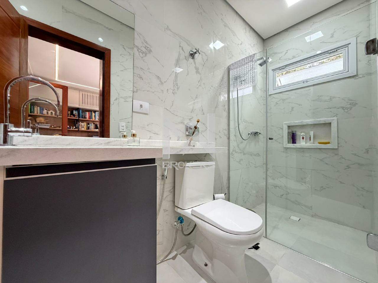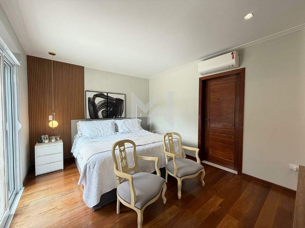 No pavimento superior, área íntima com 04 dormitórios, todos suítes, sendo uma reversível em escritório e uma master com banheira de imersão.
