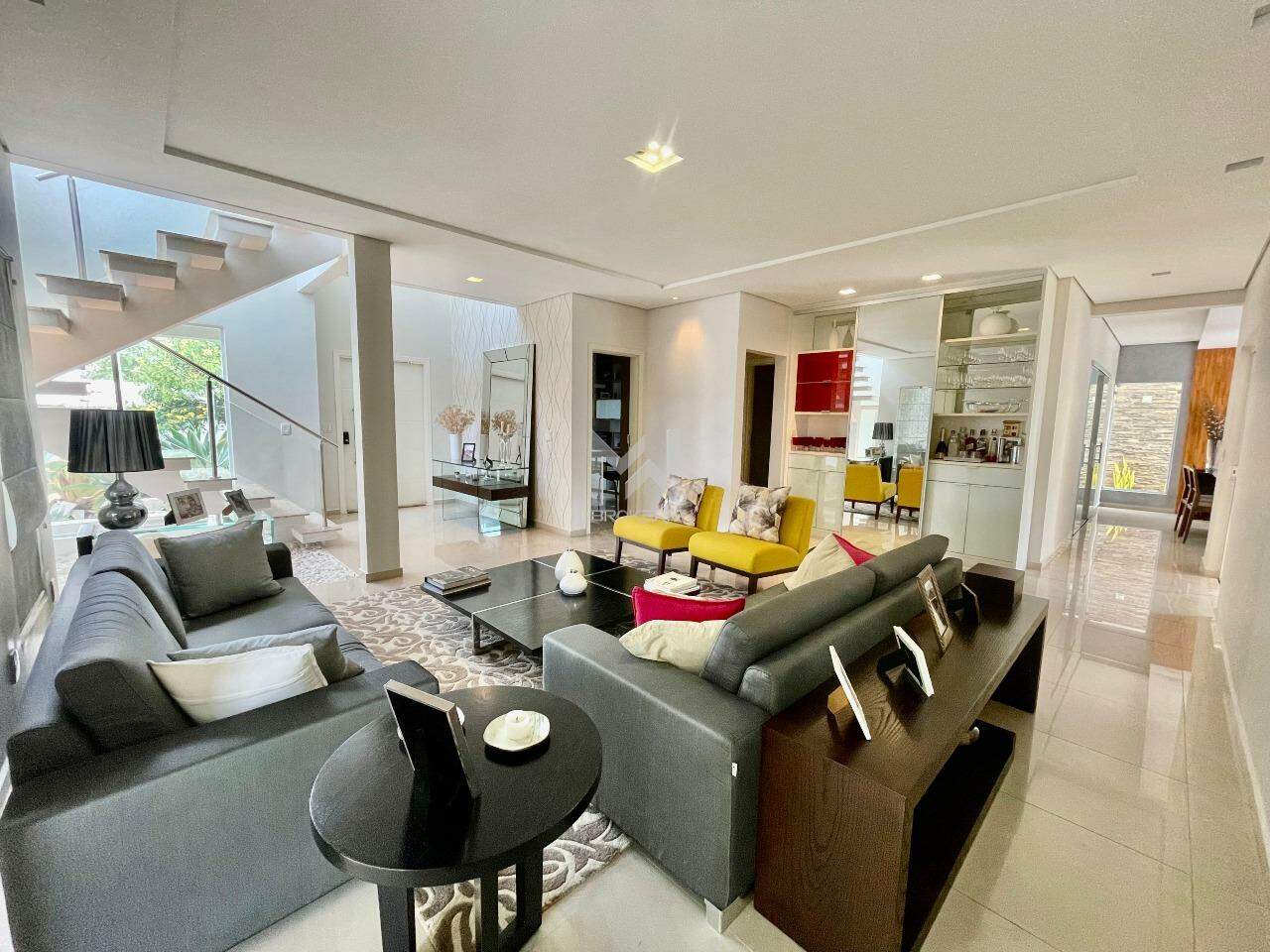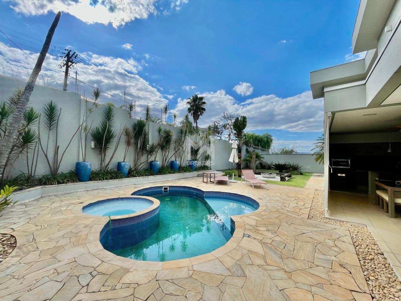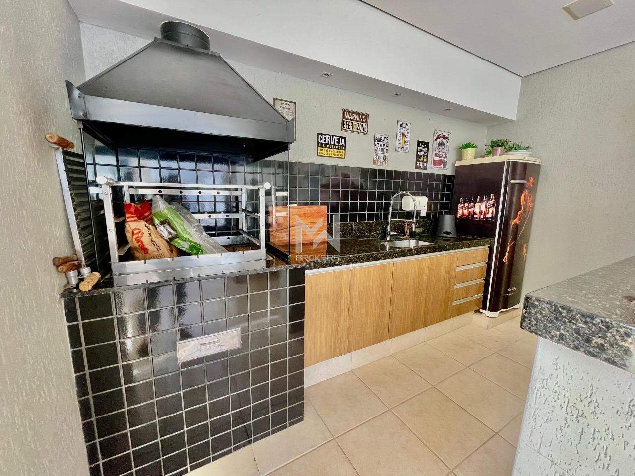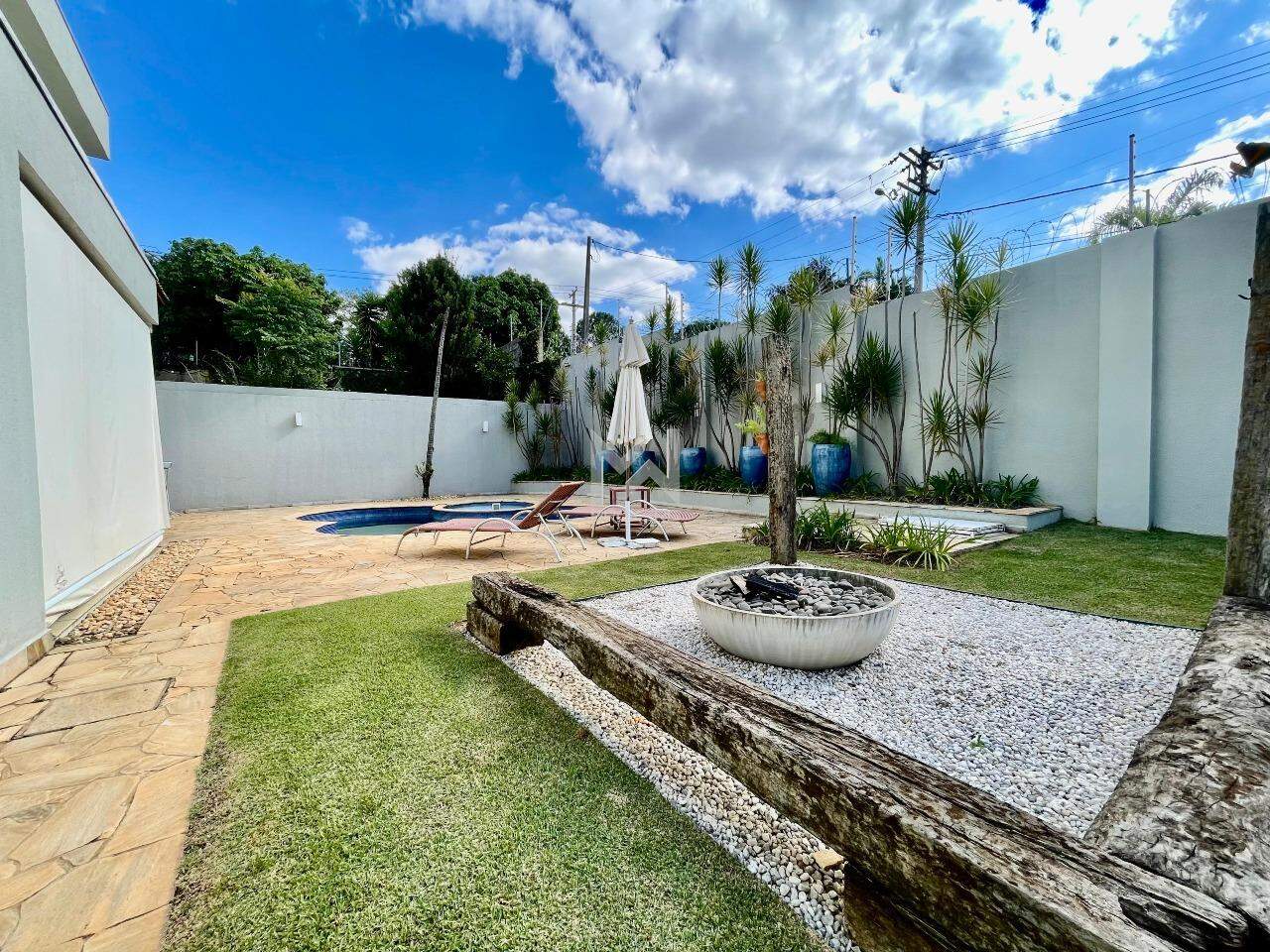 sala ampla para três ambientes, cozinha equipada e completa, área de serviço, área gourmet com churrasqueira e quintal com piscina aquecida e fire place.