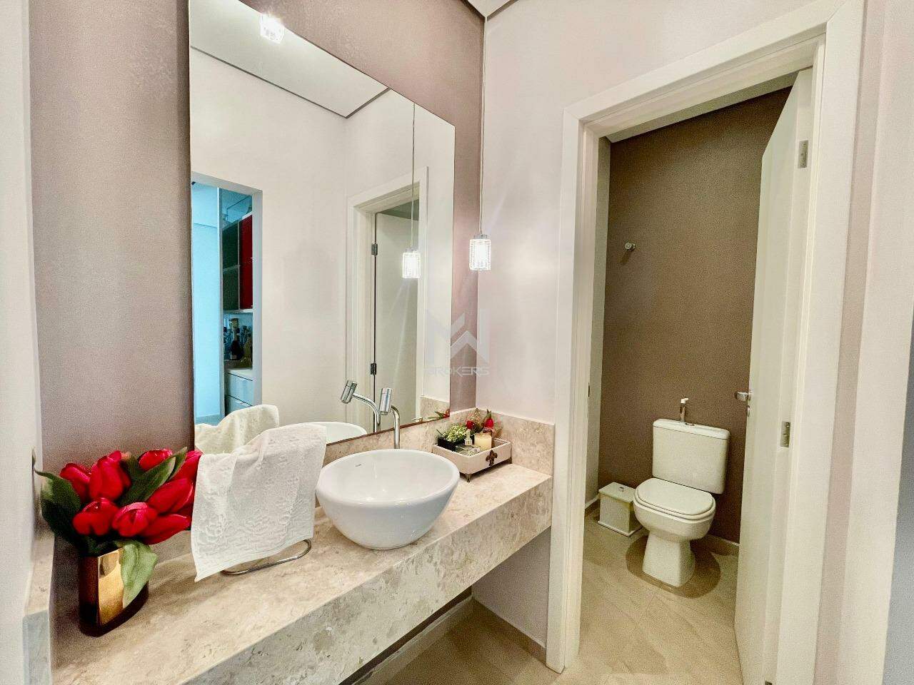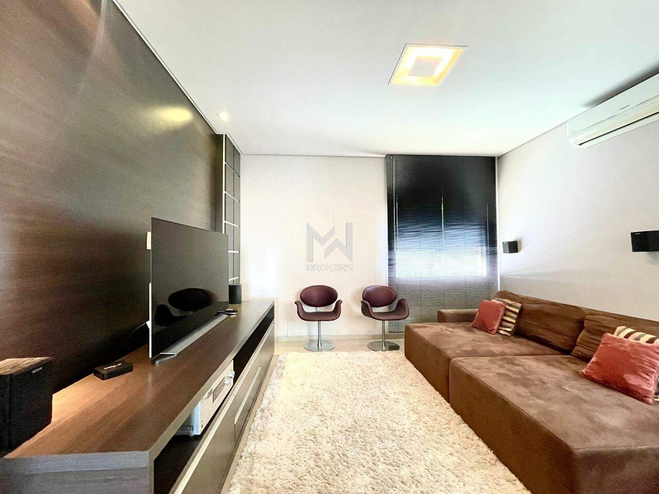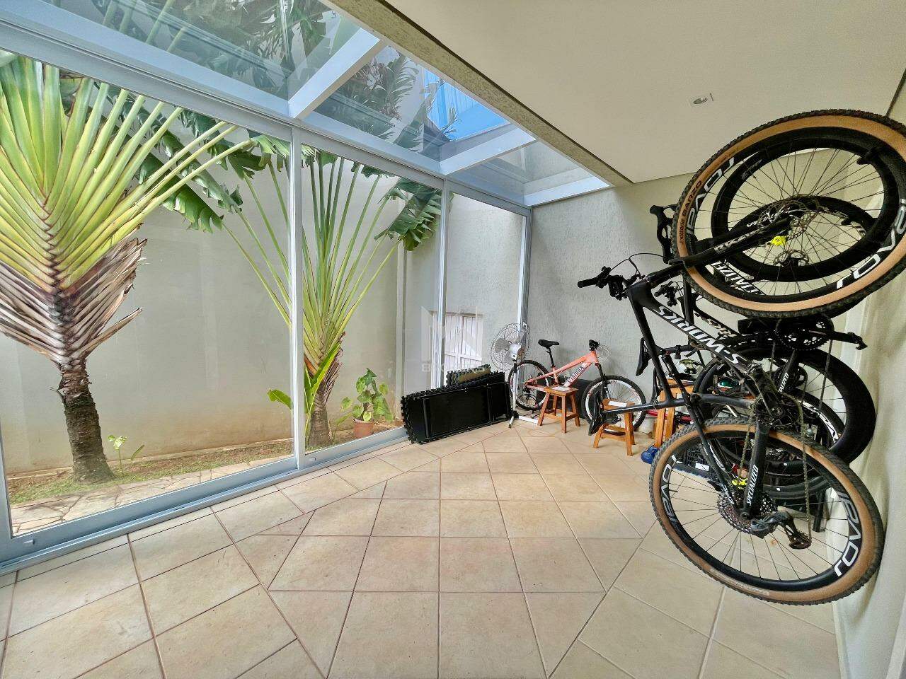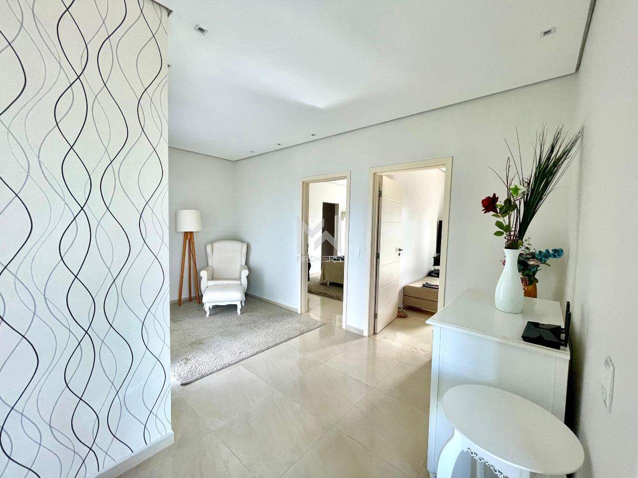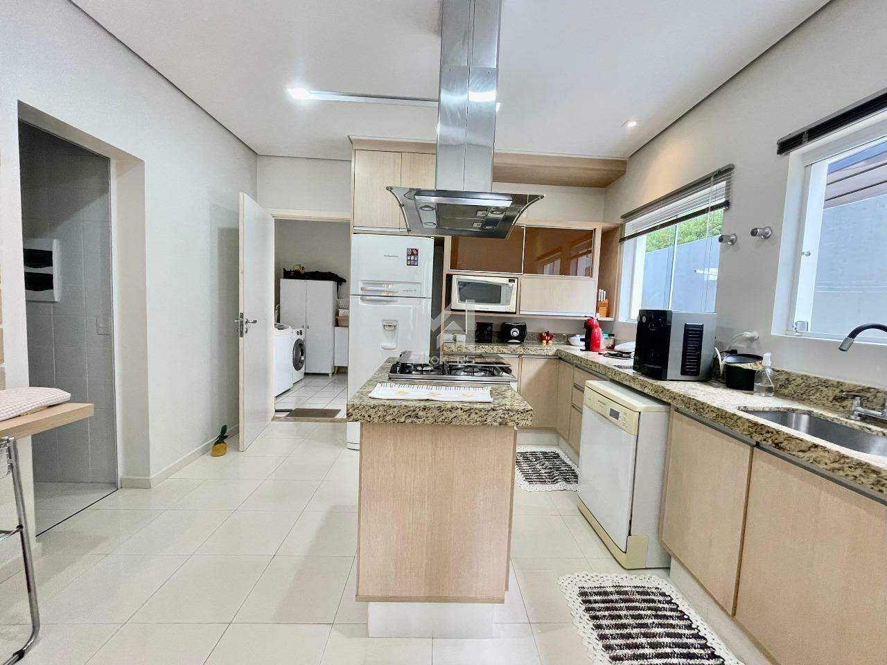 sala ampla para três ambientes, cozinha equipada e completa, área de serviço, área gourmet com churrasqueira e quintal com piscina aquecida e fire place.
