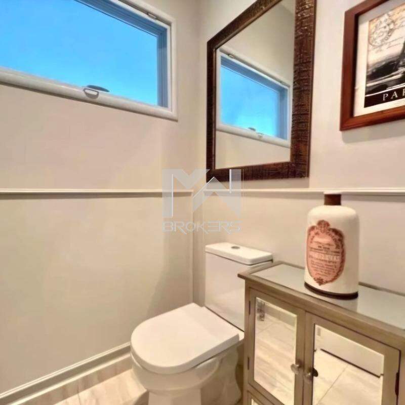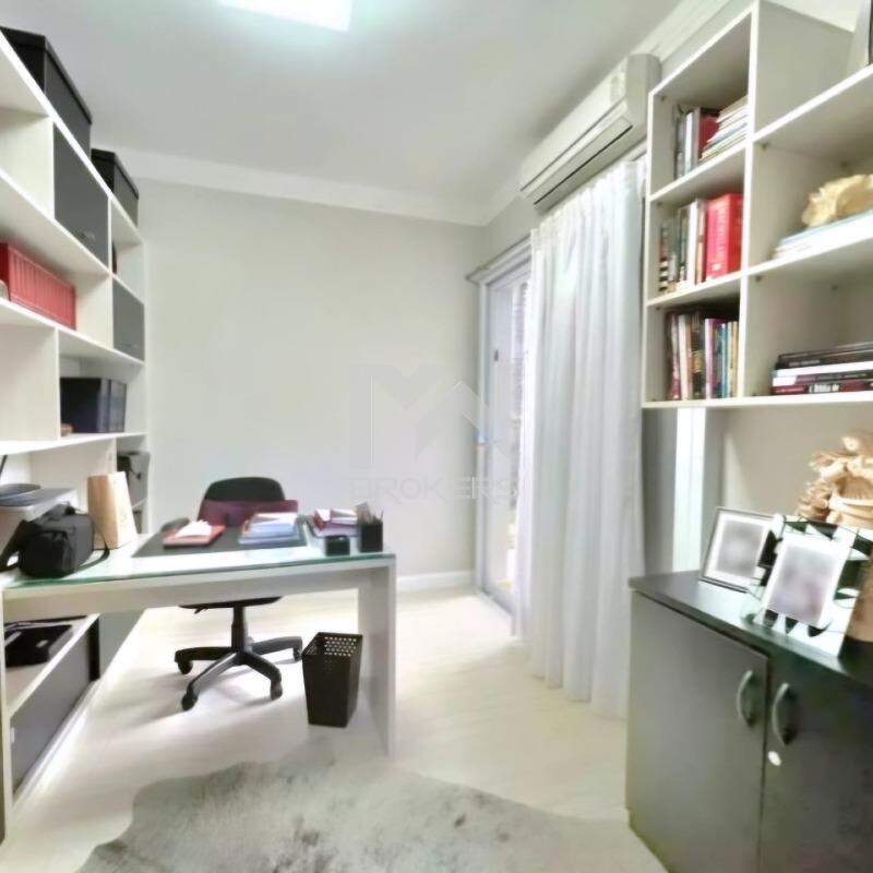 Imóvel em conceito aberto e pé direito duplo, conta com sala de estar, sala de refeições, cozinha americana e área gourmet com churrasqueira, além de lavabo, sala de TV, escritório, área de serviços e suíte de doméstica.