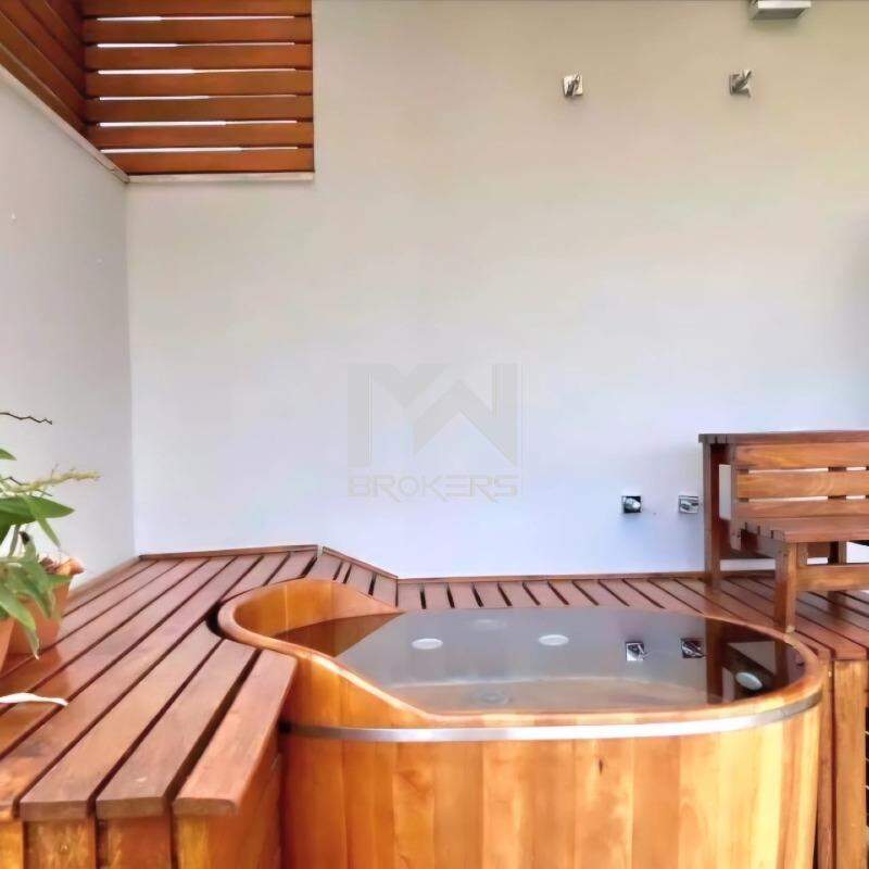 No pavimento superior, suíte master com closet, ofurô e academia privativos.