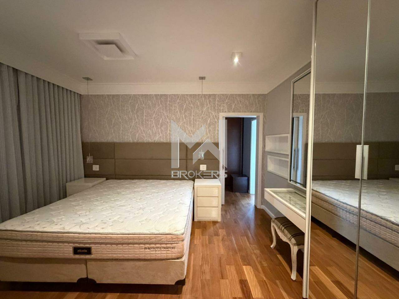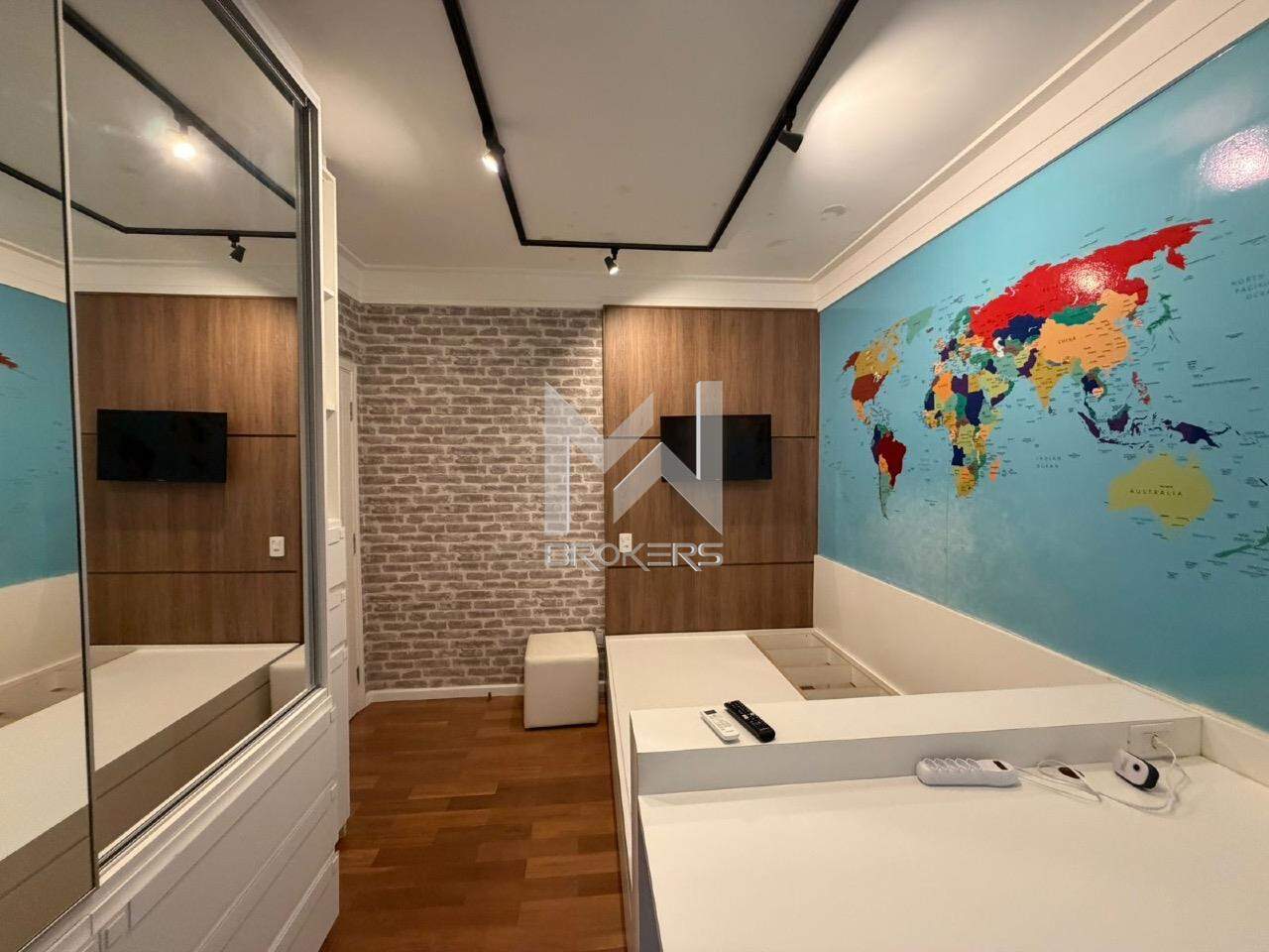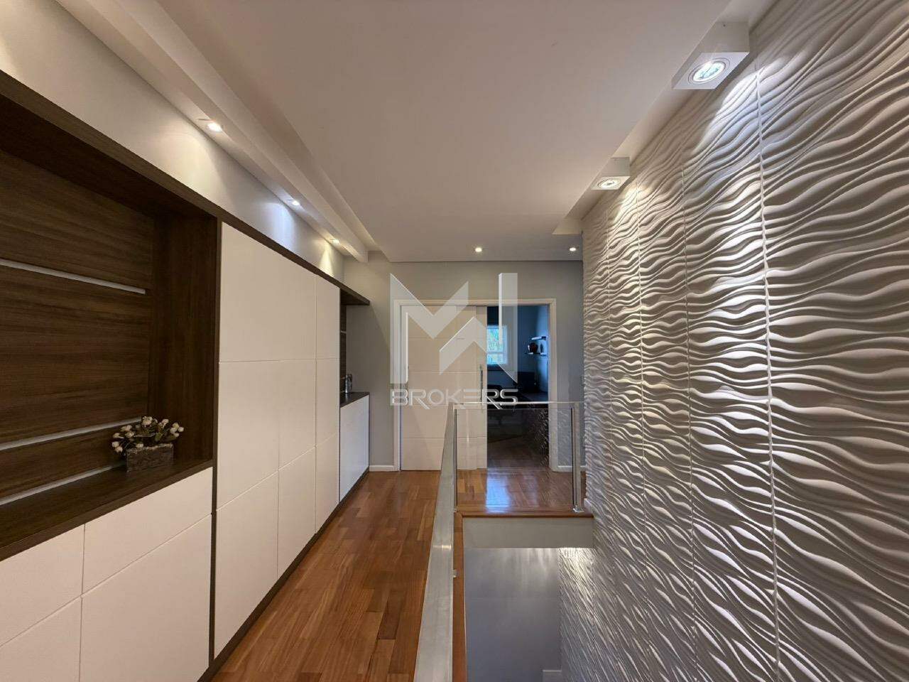 No pavimento superior, hall íntimo com roupeiro, escritório com armários planejados e sofá cama e 03 dormitórios, sendo duas suítes e um quarto com banheiro. Todos os quartos ricos em armários planejados, com sacada e ar condicionado.
