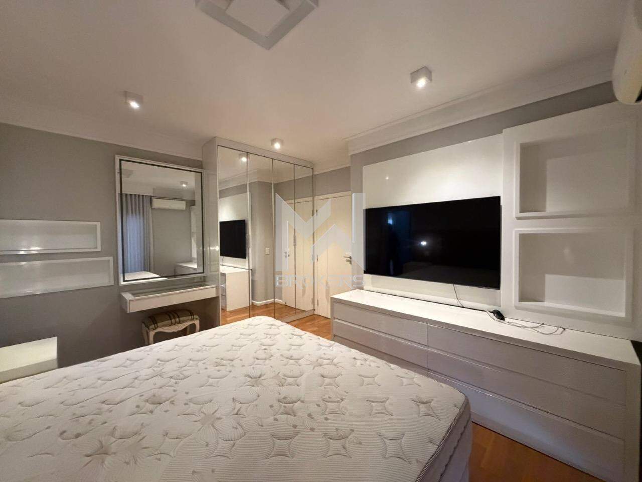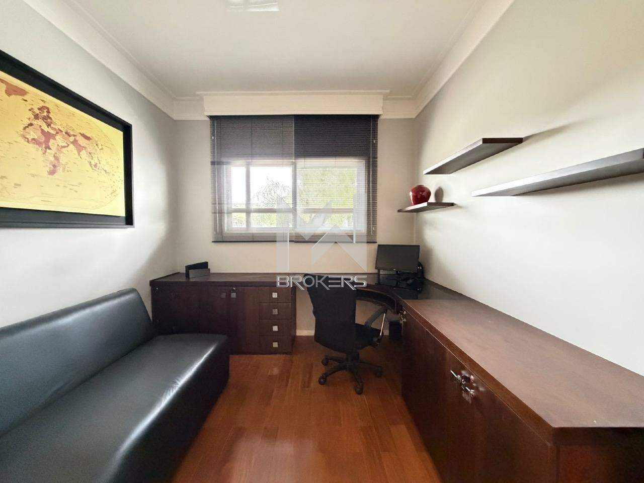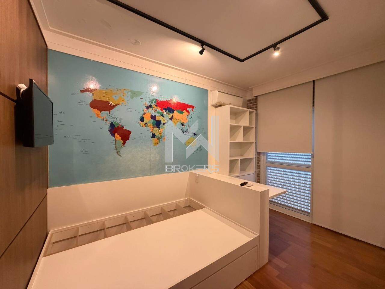 No pavimento superior, hall íntimo com roupeiro, escritório com armários planejados e sofá cama e 03 dormitórios, sendo duas suítes e um quarto com banheiro. Todos os quartos ricos em armários planejados, com sacada e ar condicionado.