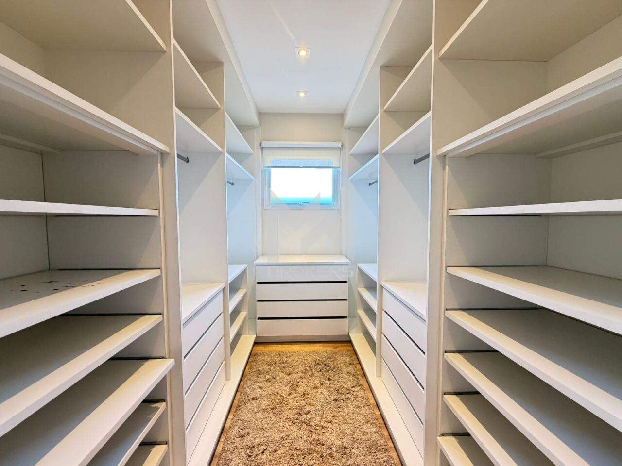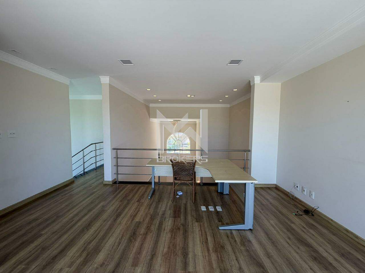 No pavimento superior, escritório e suíte de visitas com armários e sacada com vista panorâmica da cidade.