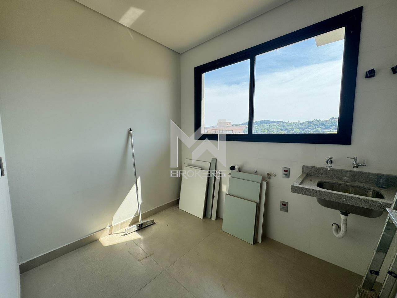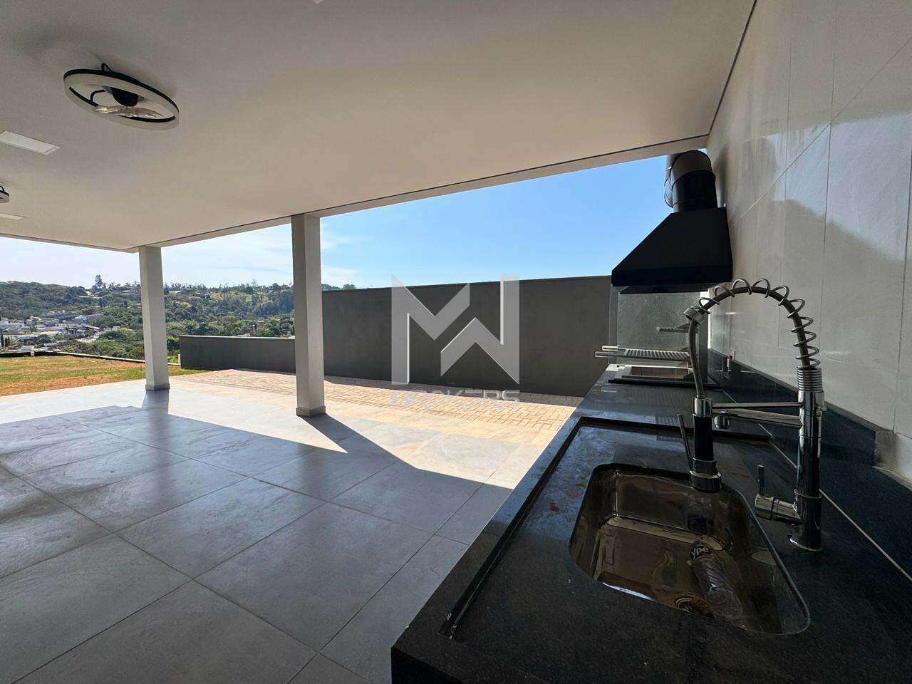Sala de estar e de refeições integradas, escritório, lavabo, cozinha e área de serviços, além de um espaço gourmet integrado ao amplo quintal com espaço para a construção de uma piscina.
