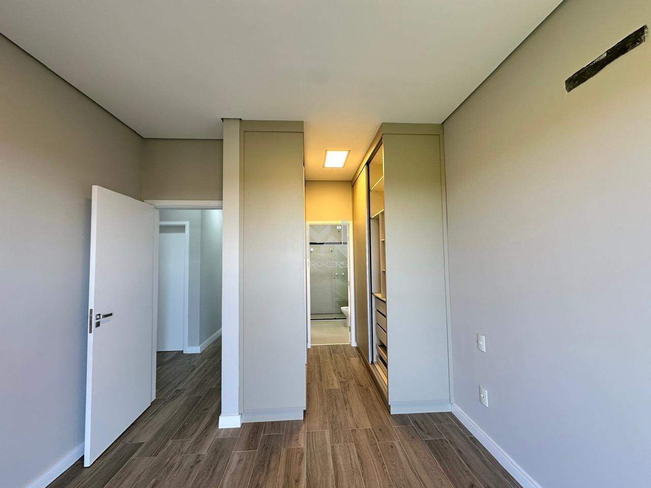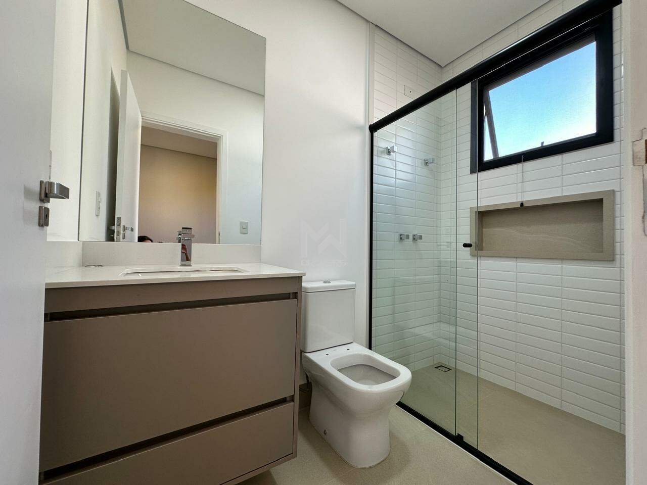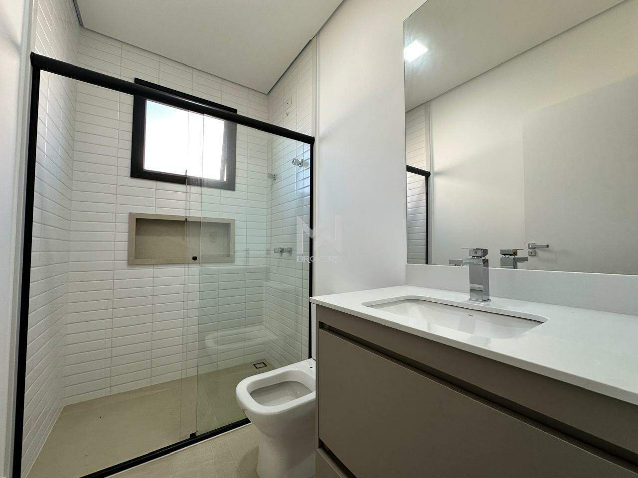 A suíte principal possui varanda, closet com armário planejado e no banheiro cubas e chuveiros duplos, com armário planejado e box em vidro.