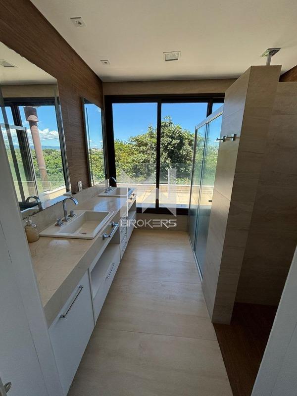 No piso superior, o imóvel conta com 5 suítes, sendo a suíte master equipada com duas cubas, closet e ar condicionado, além de academia, oferecendo praticidade para a rotina.