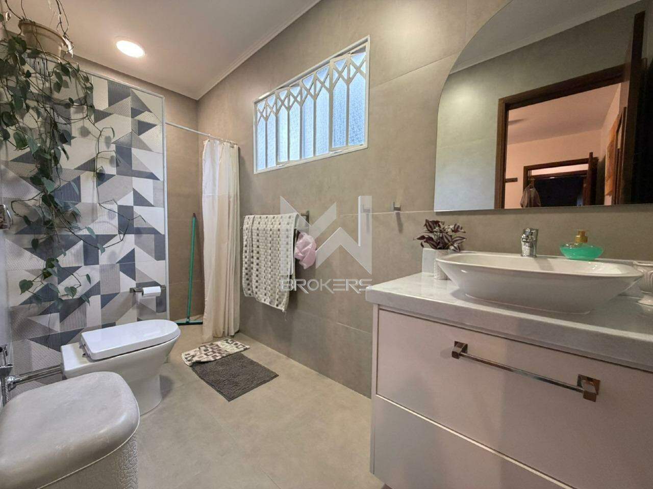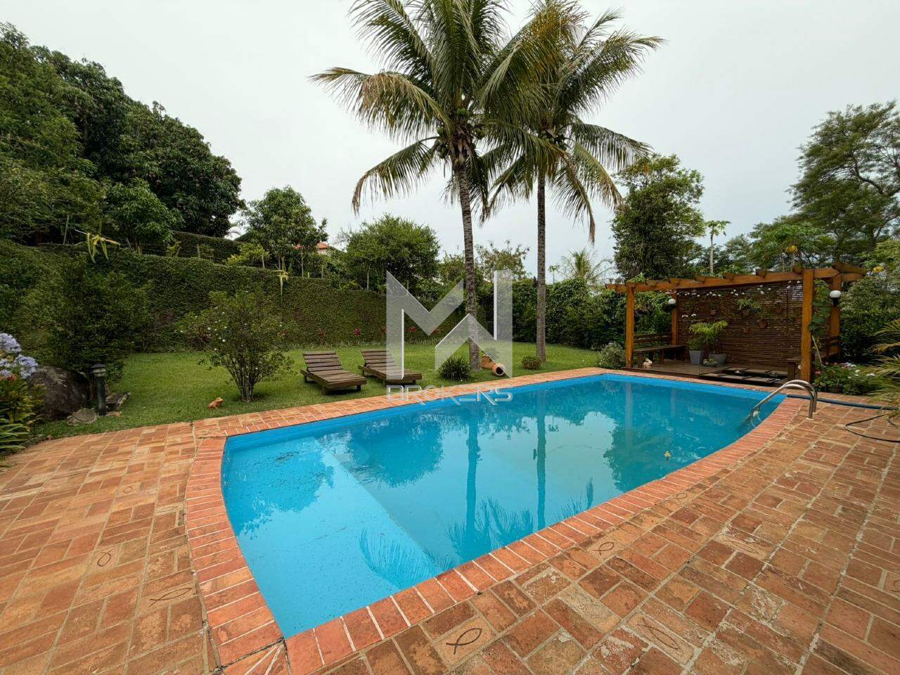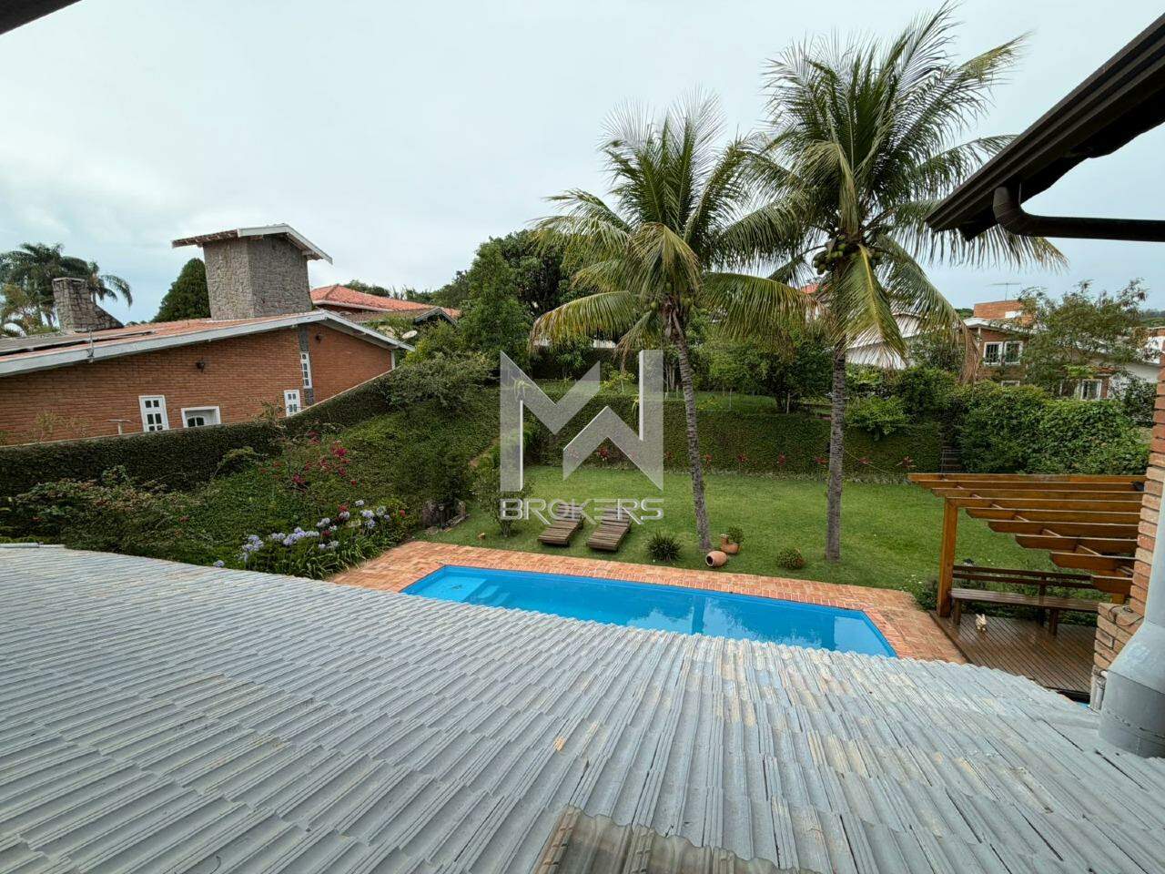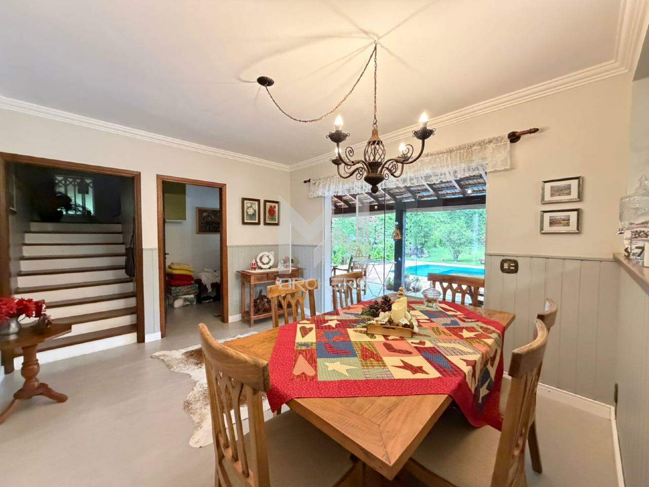 Casa com arquitetura alemã. Sala de estar com lareira, escritório reversível em dormitório, lavabo, segundo escritório, cozinha integrada à sala de refeições, despensa, área de serviços e depósito.