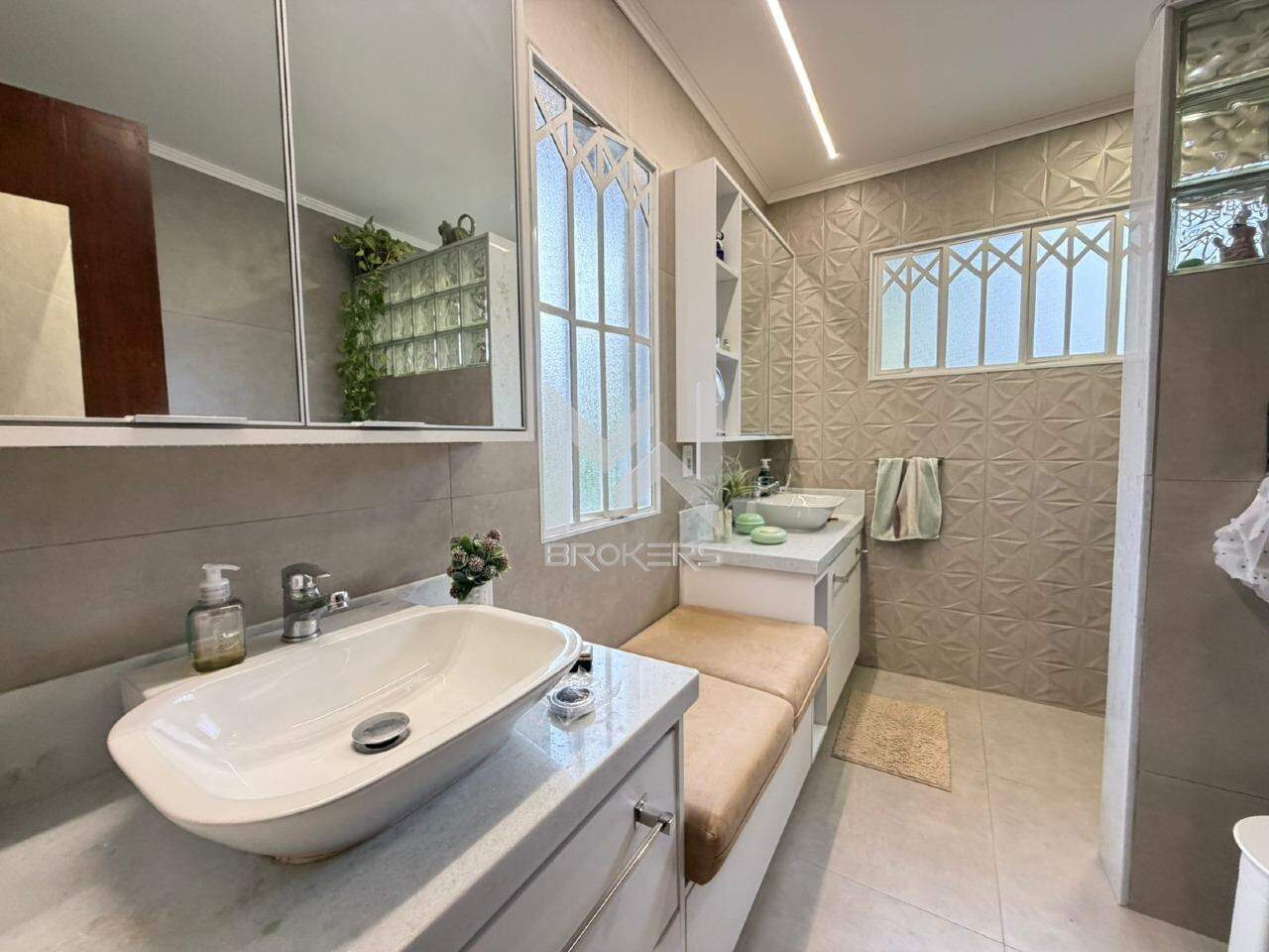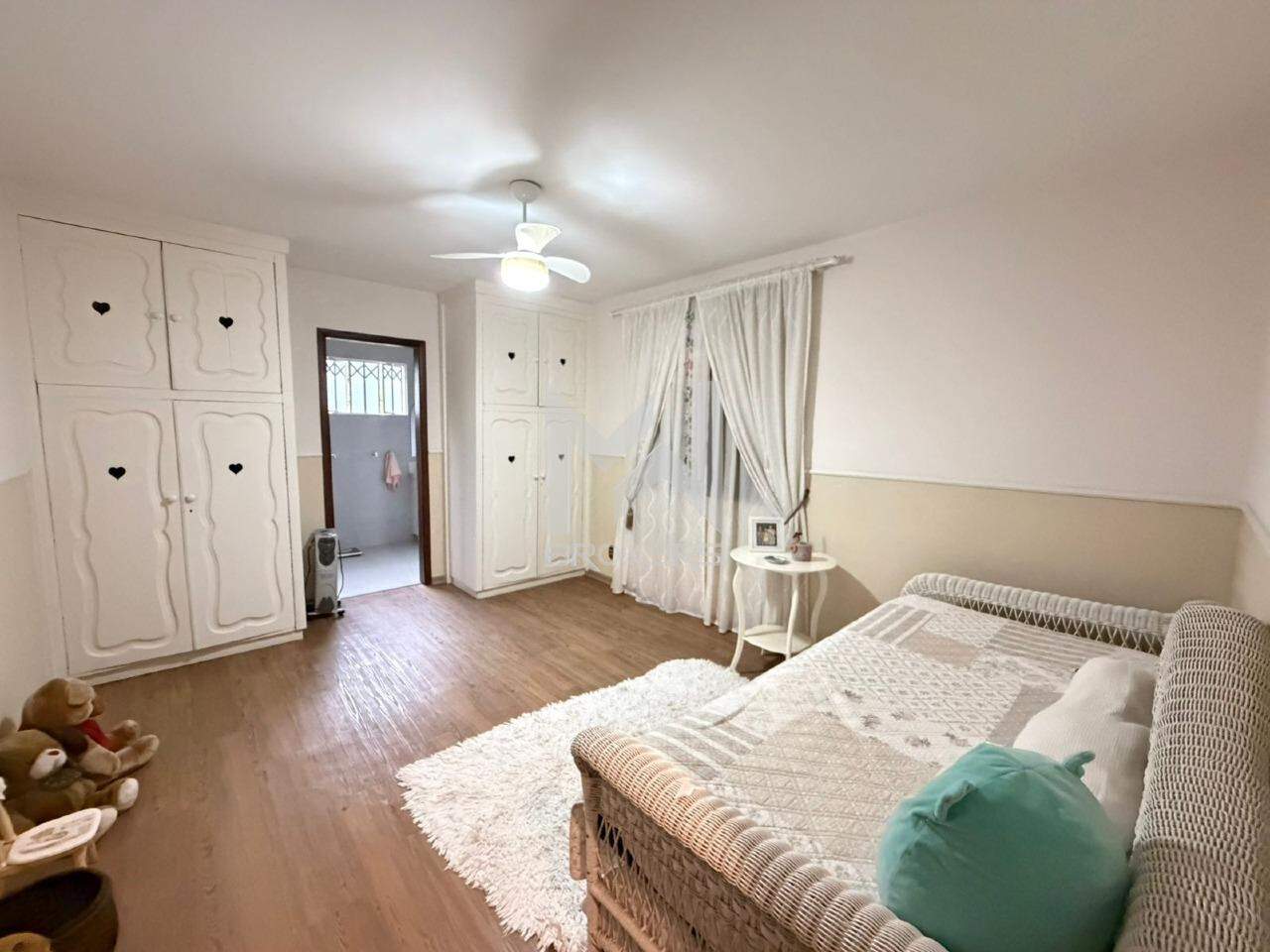 No pavimento superior, área íntima com 03 dormitórios, todos suítes, sendo a master com closet.