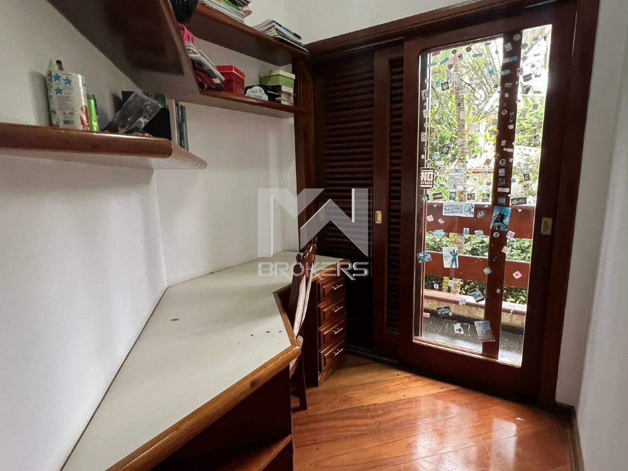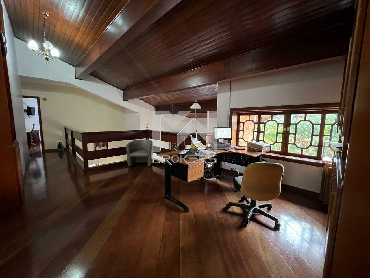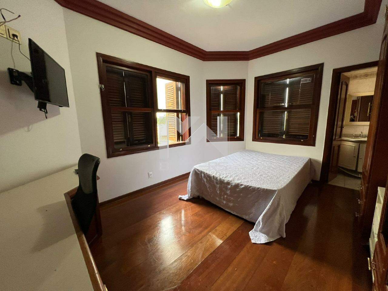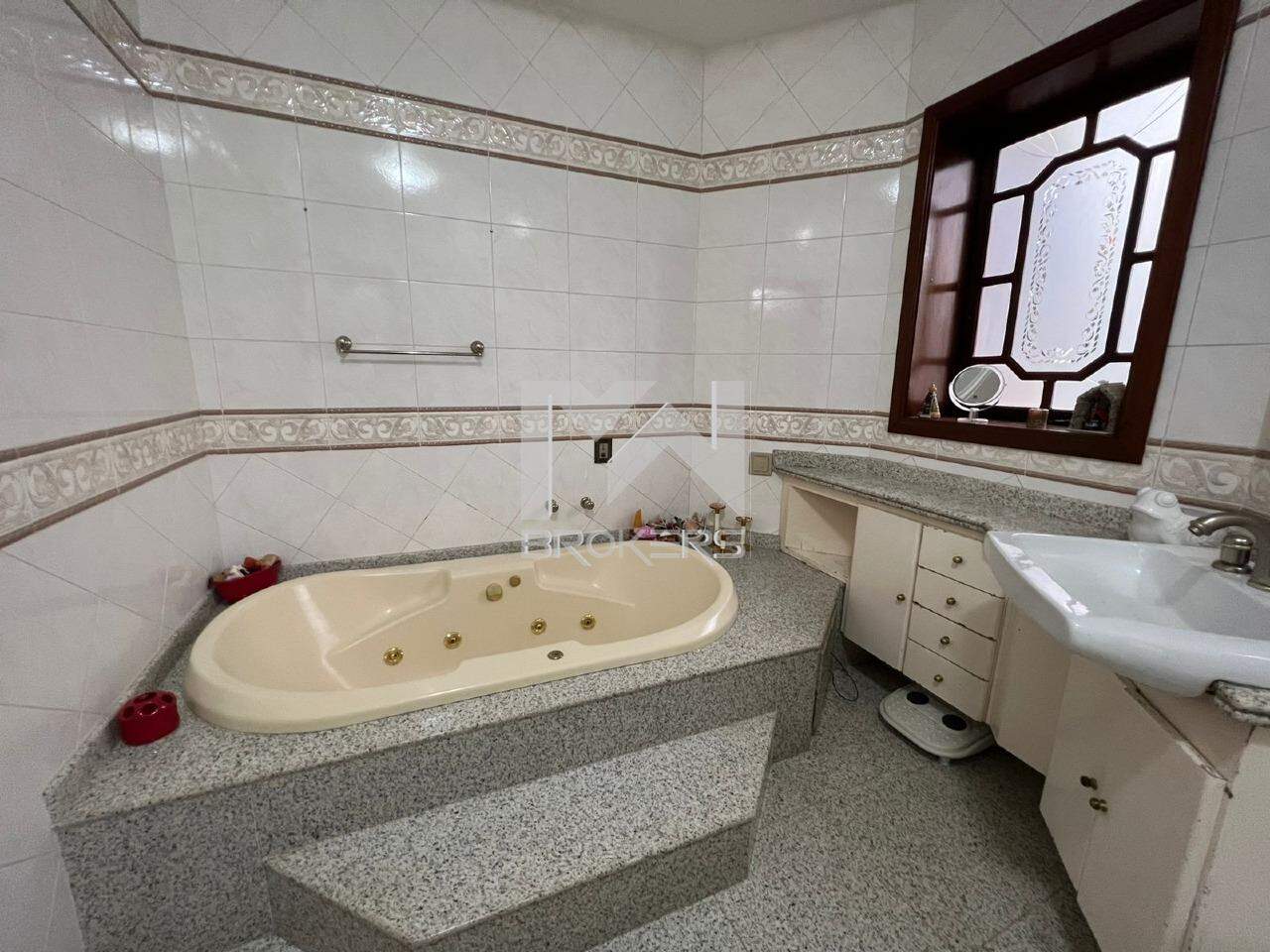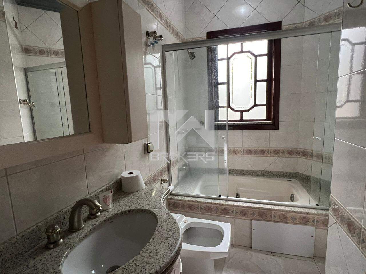 No pavimento superior, há um hall de acesso à área íntima, onde estão localizadas três suítes com armários e banheira. Uma das suítes possui um closet, hidromassagem e chuveiro.