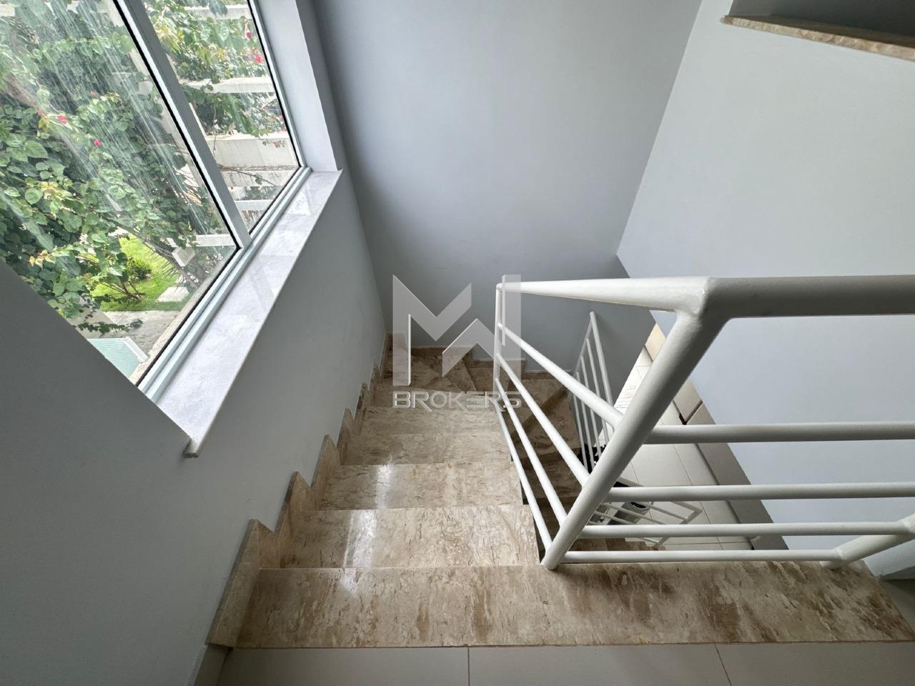 No pavimento superior, hall íntimo com escritório e 03 dormitórios, todos suítes.