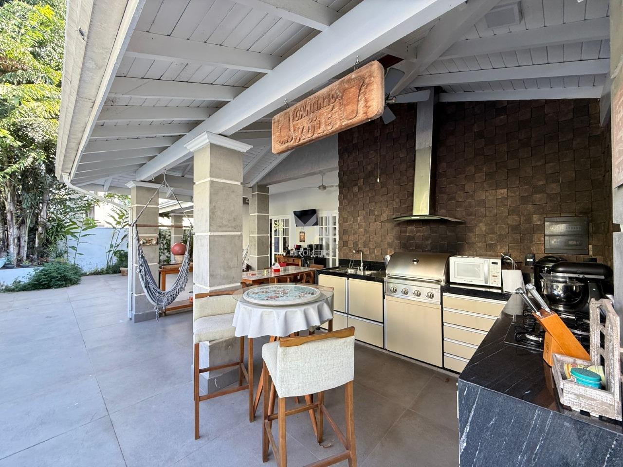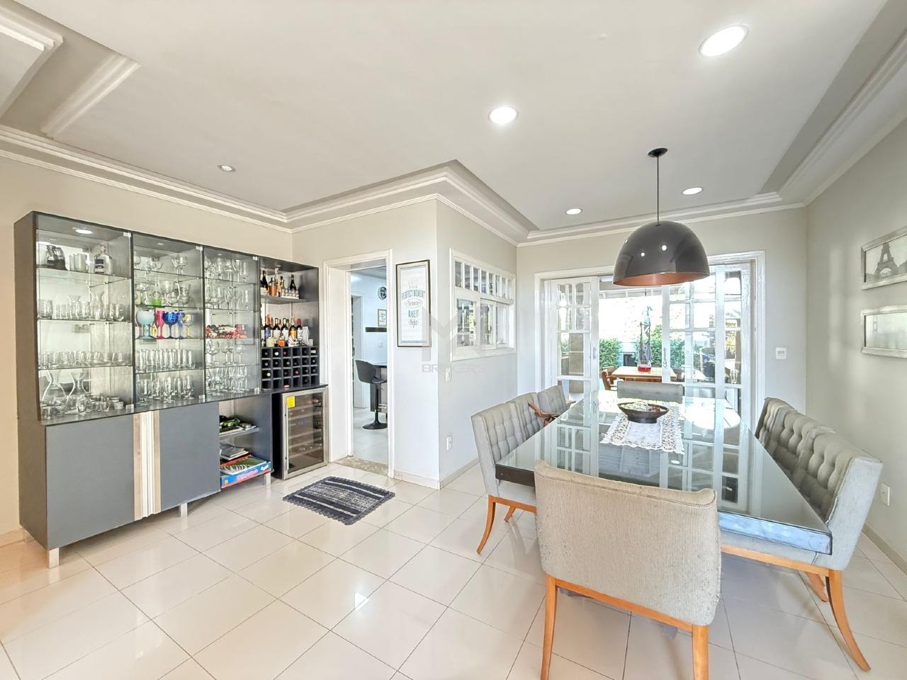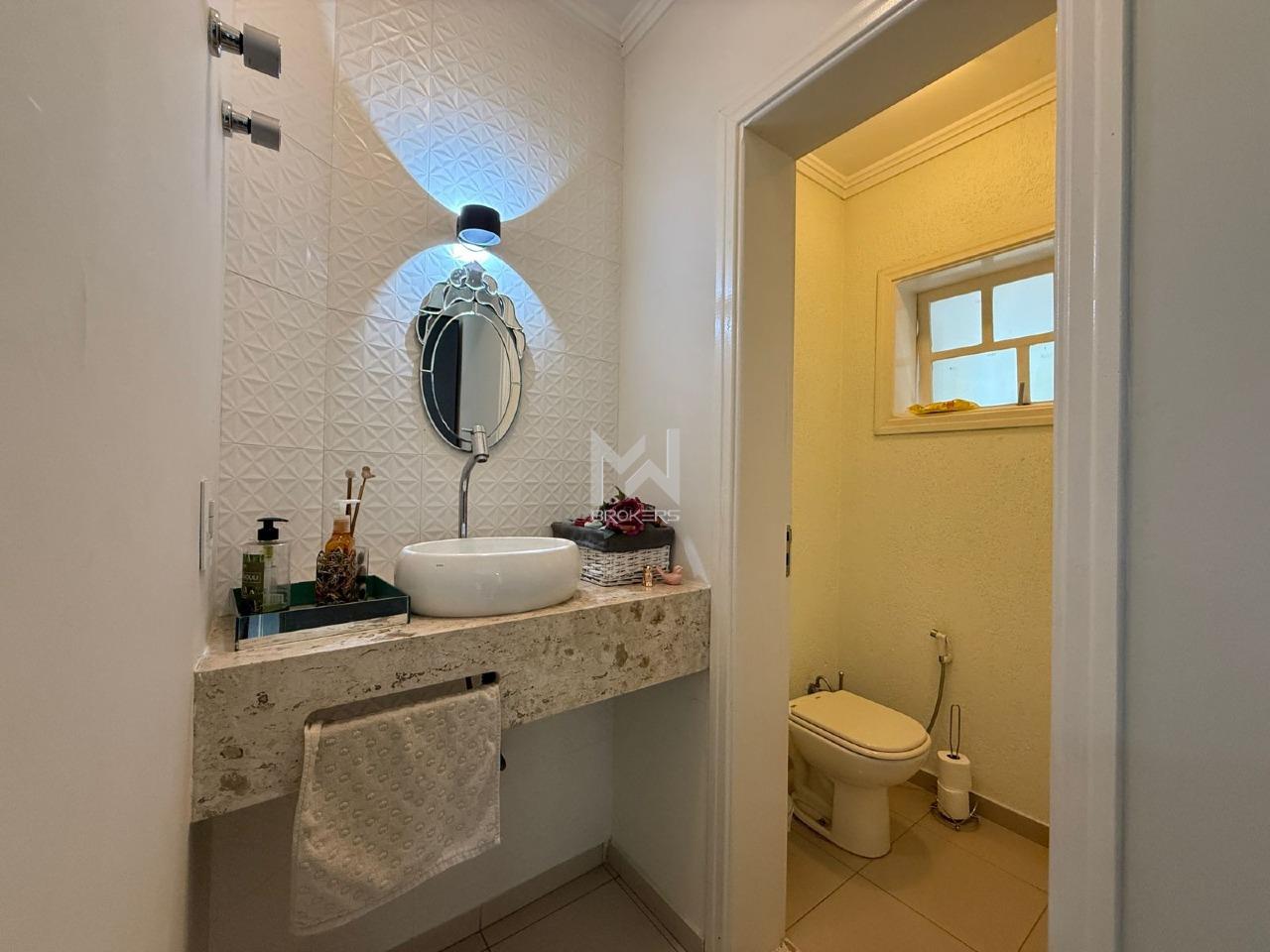 Sala de estar, sala de lareira e sala de refeições integradas, lavabo, home office reversível para suíte no térreo. Cozinha planejada, despensa, área de serviços com armários, área apoio externo e dormitório de doméstica com banheiro.