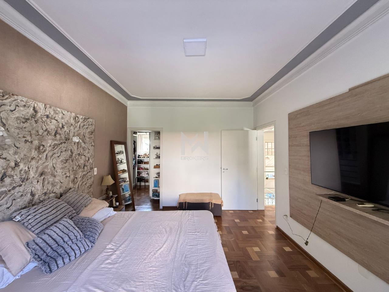No pavimento superior, sala íntima com sacada e 05 dormitórios, todos suítes, sendo 1 master com closet e hidro.