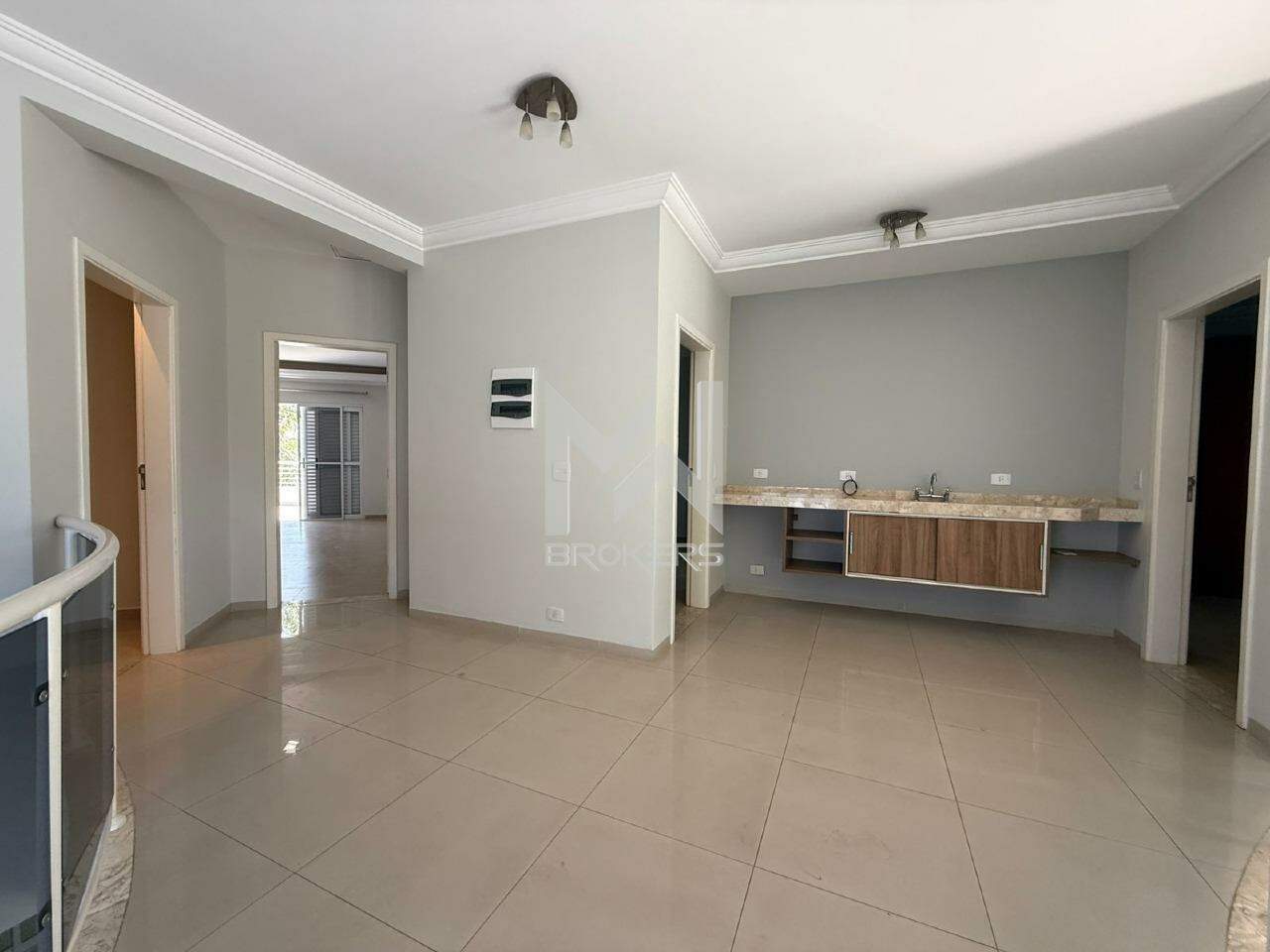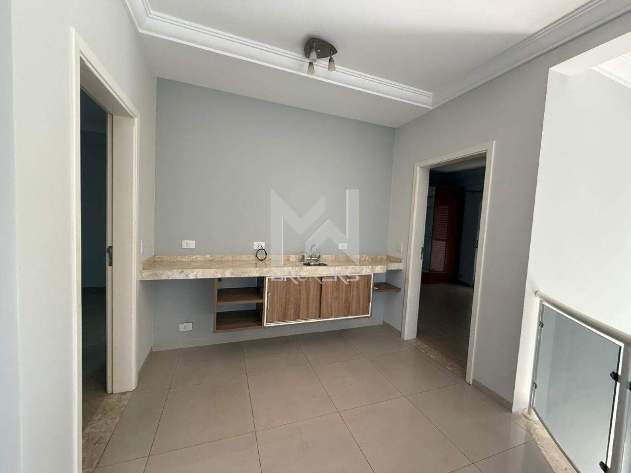 No pavimento superior, hall com copa, escritório e 03 dormitórios, todos suítes com varanda, sendo uma master com closet. Uma das suítes de apoio possui sala íntima privativa.