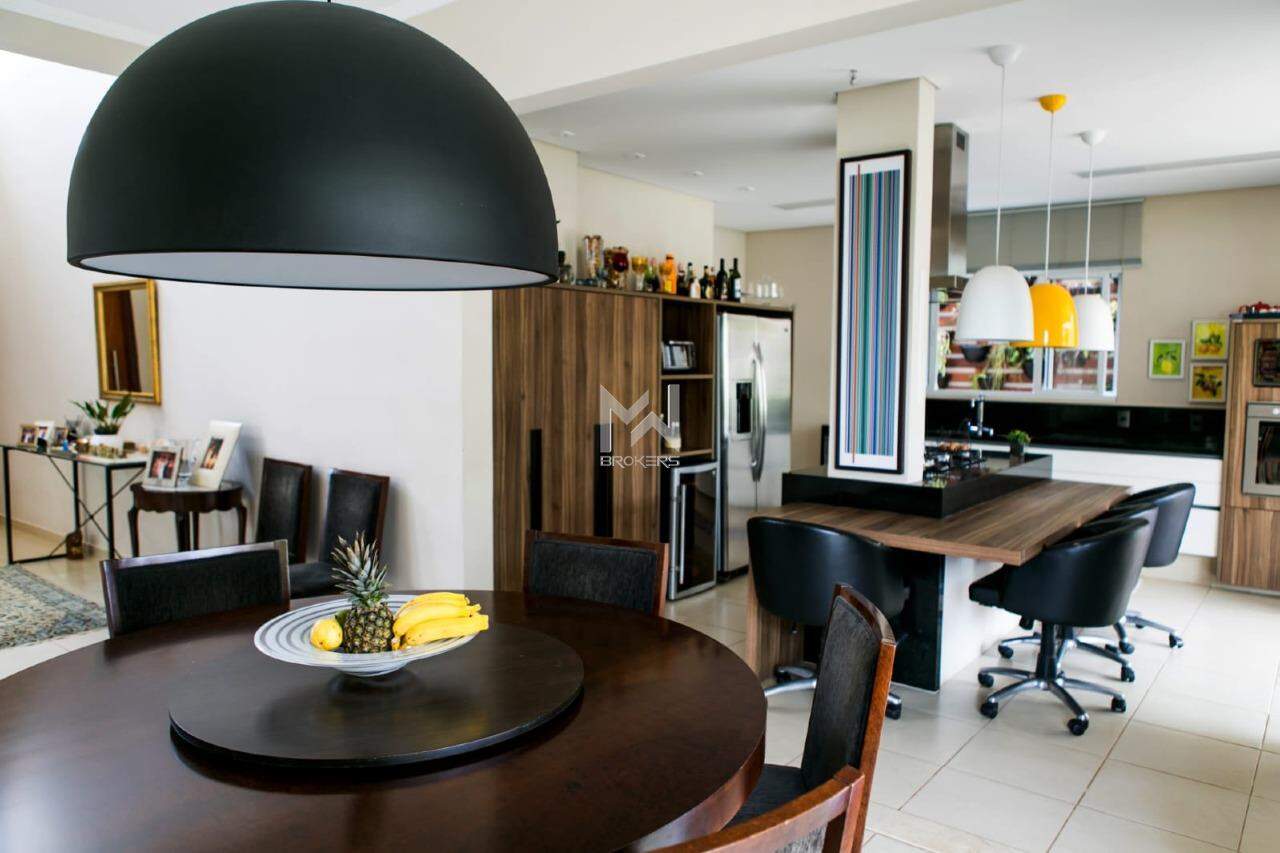 Sala de estar com pé direito duplo, sala de TV, sala de refeições e cozinha gourmet (com despensa), todas integradas. Além disso, dispõe de lavabo, escritório, área de serviços e dependência de doméstica.