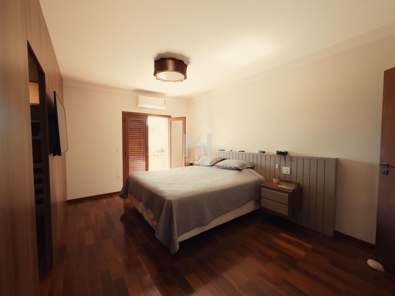 Na área íntima, são 5 dormitórios, sendo 4 suítes – uma delas anexa à garagem e outra com closet e varanda com vista para o jardim. Todos os ambientes possuem móveis planejados e ar-condicionado.