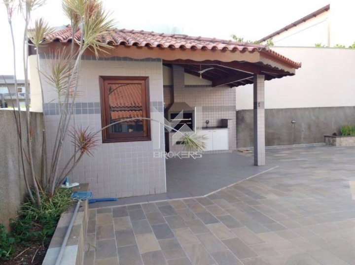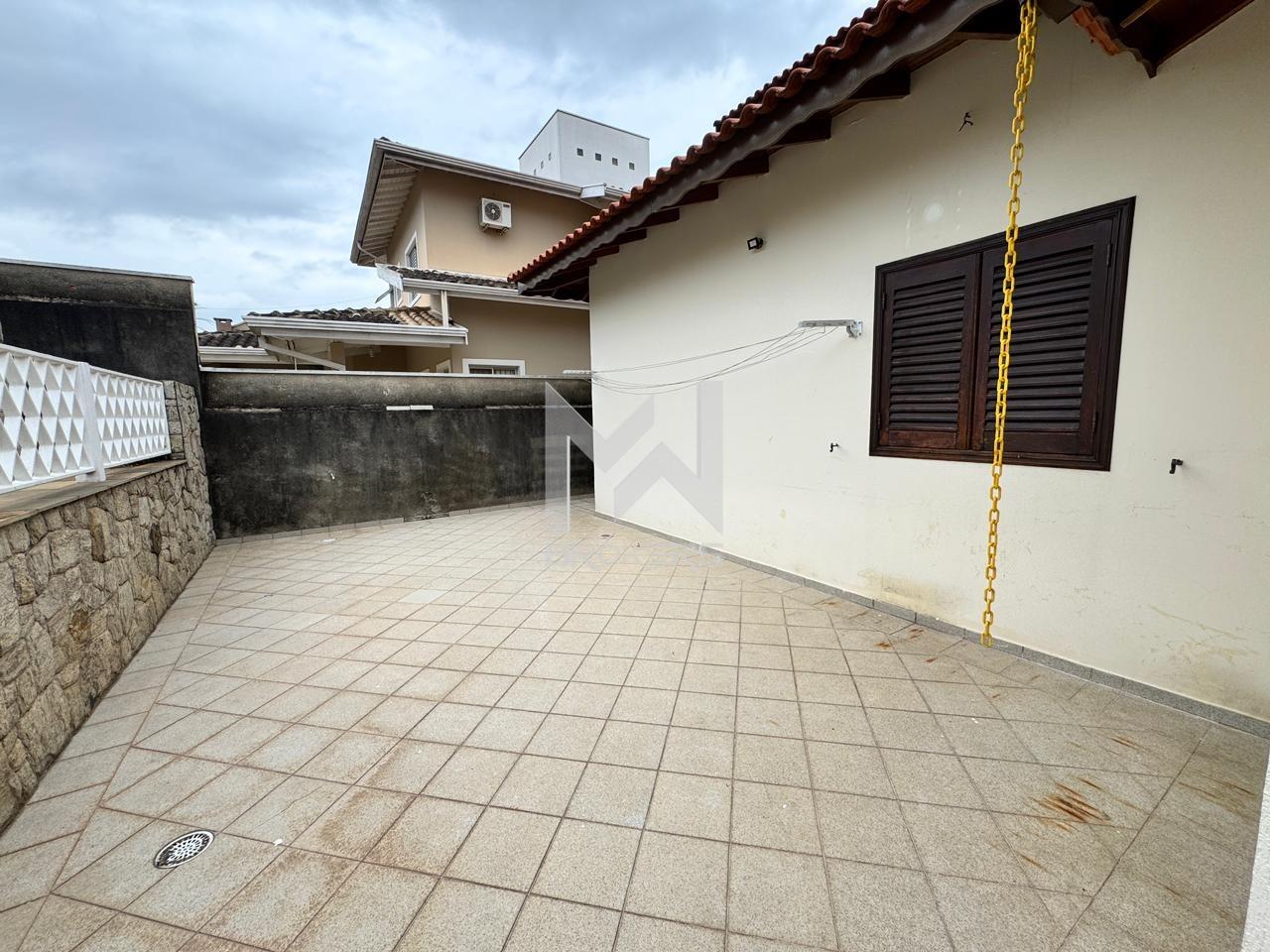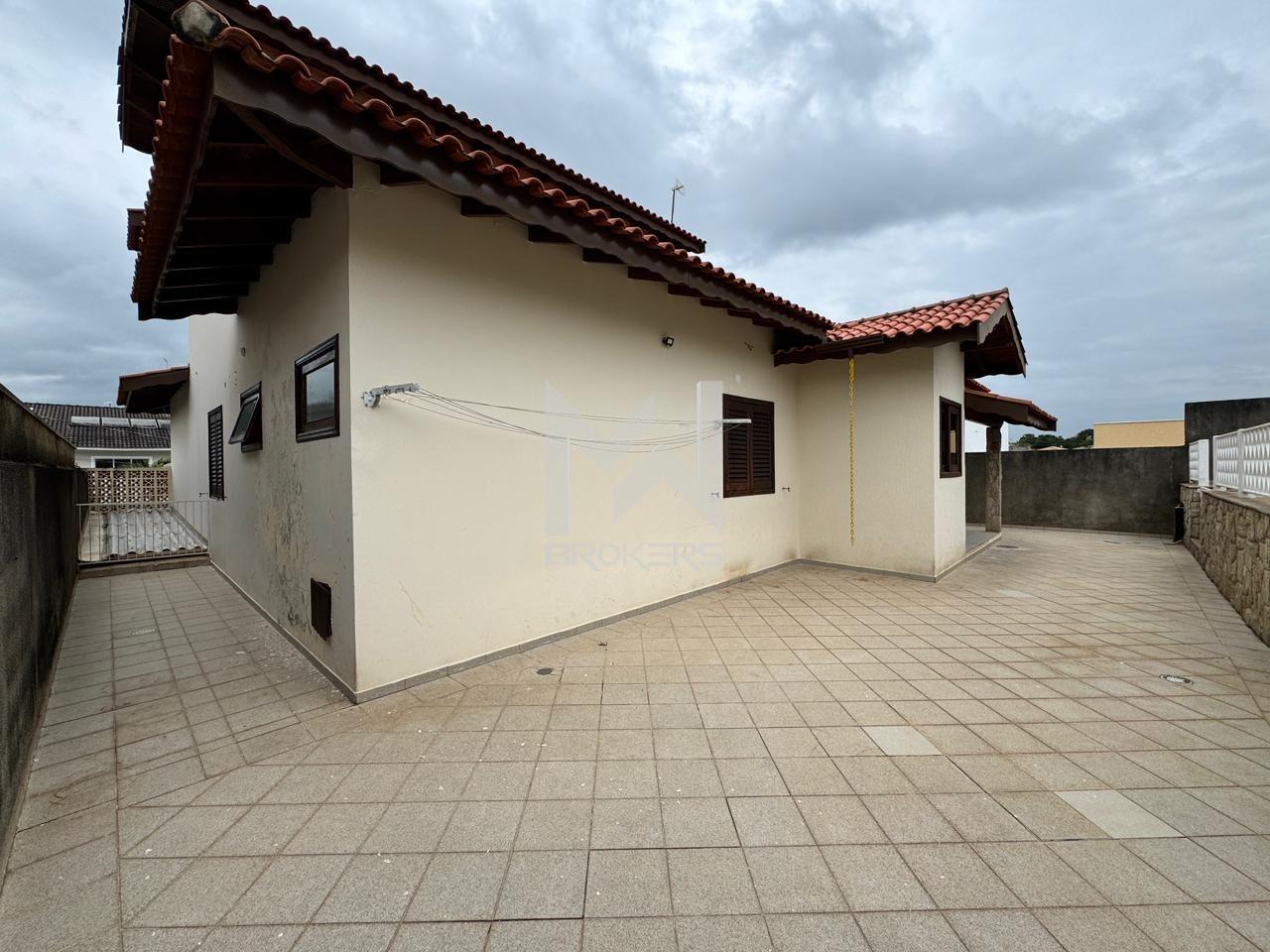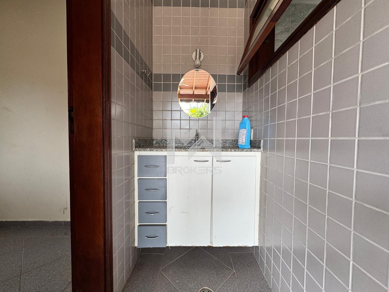 Casa para alugar com uma sala com lareira, sala de jantar, cozinha, área de serviço, área gourmet com churrasqueira, quintal e piscina.