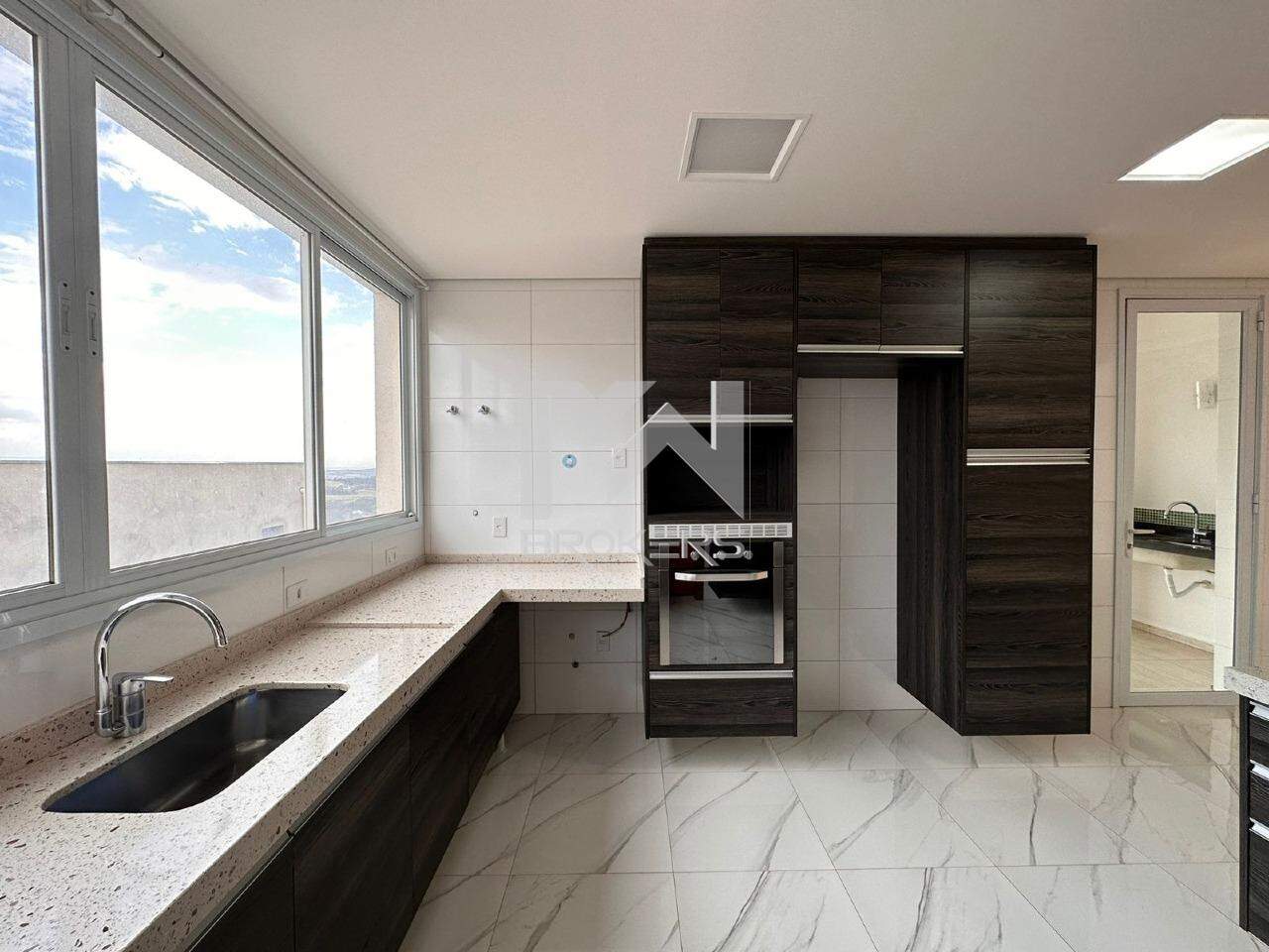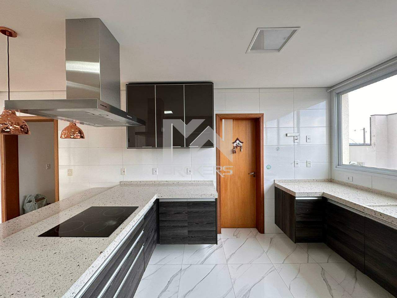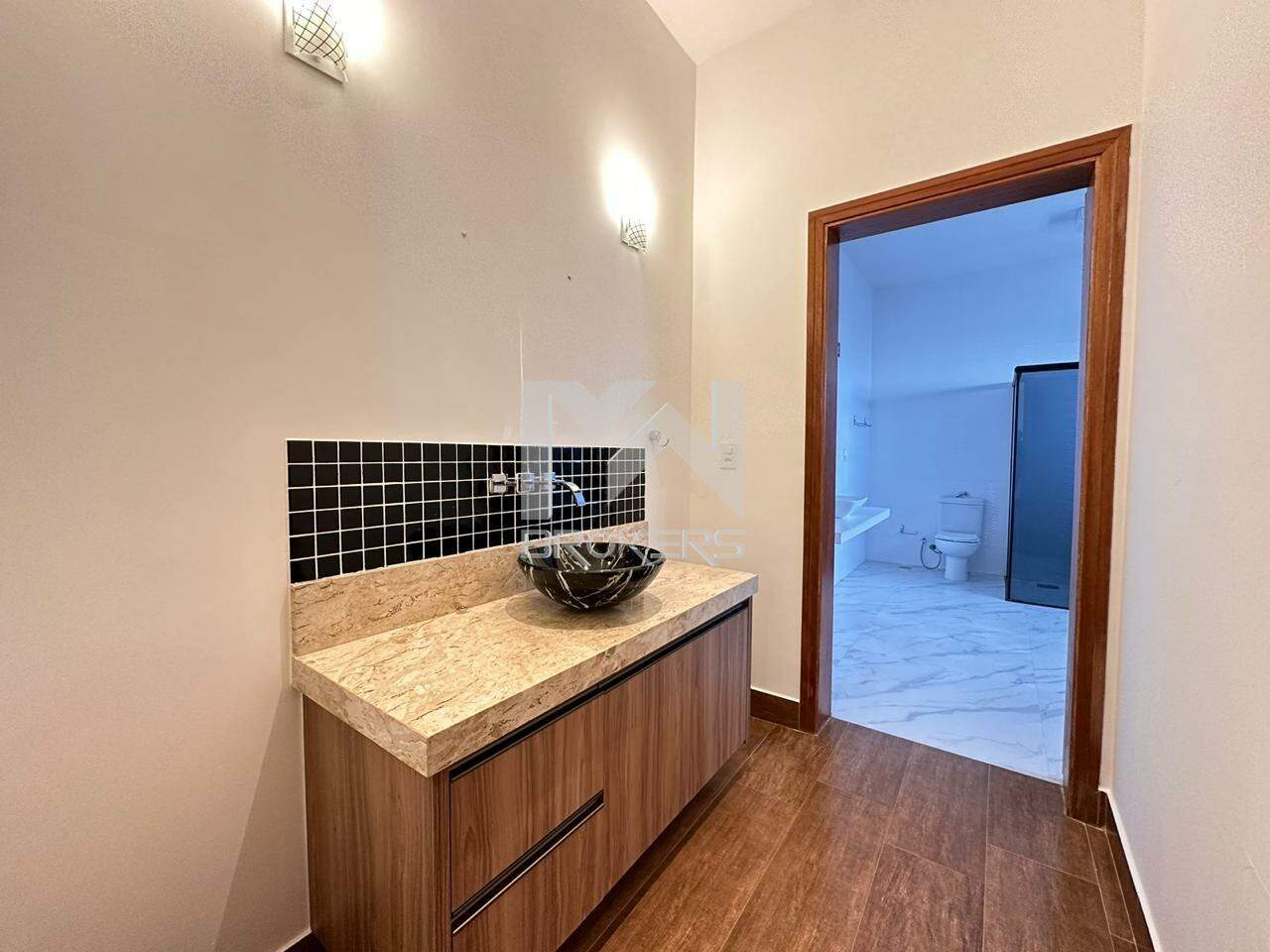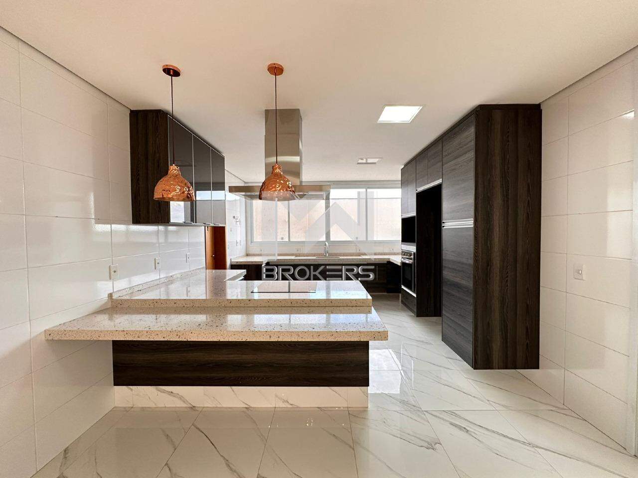 No térreo, você encontrará as salas com pé direito duplo e uma bela cascata central, além de um lavabo com pia em silestone. As salas de TV, estar e refeições são integradas, proporcionando um ambiente amplo e aconchegante. A cozinha também é integrada e possui uma ilha central e pia em silestone, oferecendo o máximo em funcionalidade e elegância.