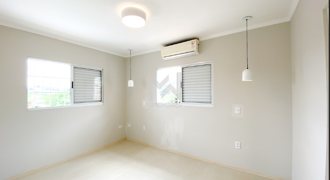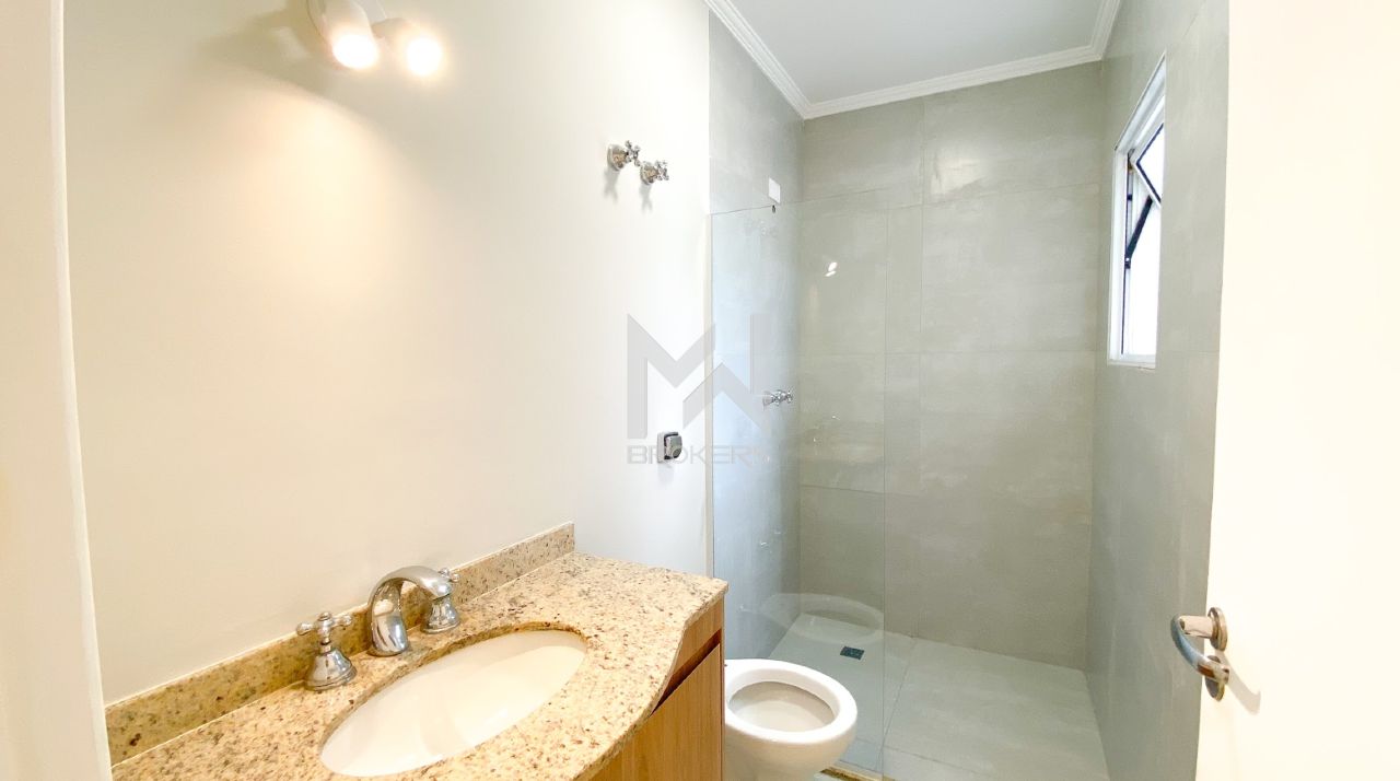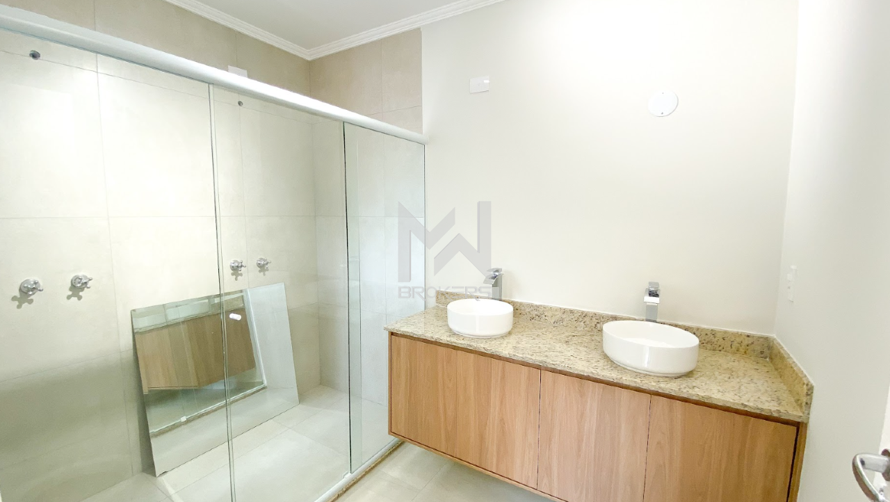 No pavimento superior, 03 dormitórios, todos suítes, sendo a master com cuba e duchas duplas.
