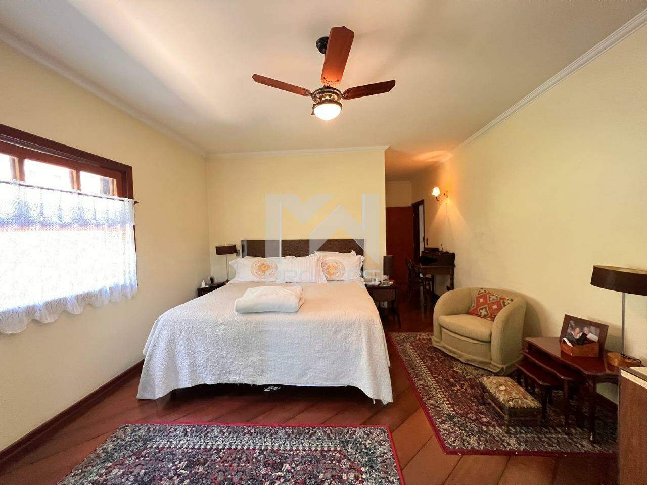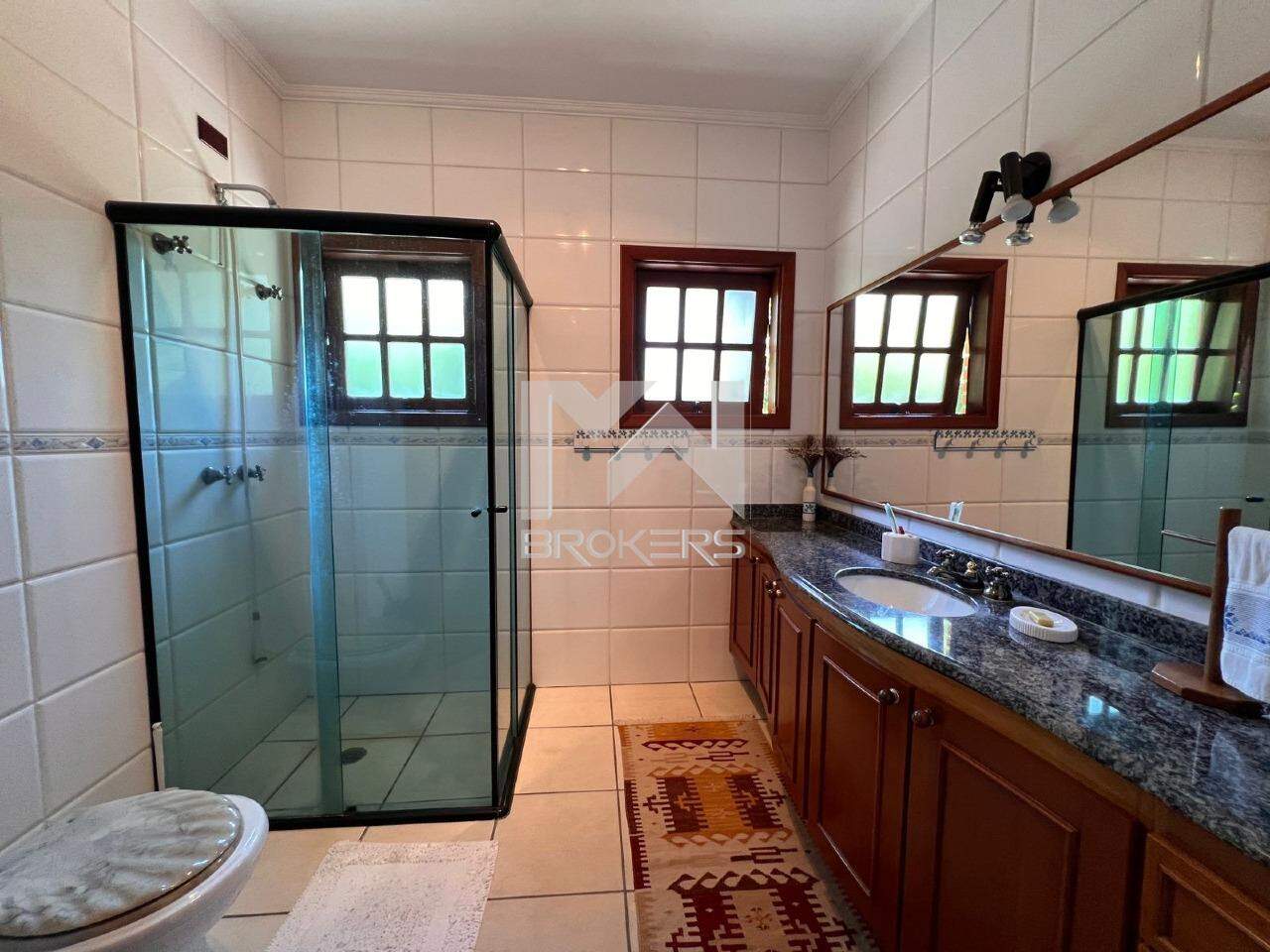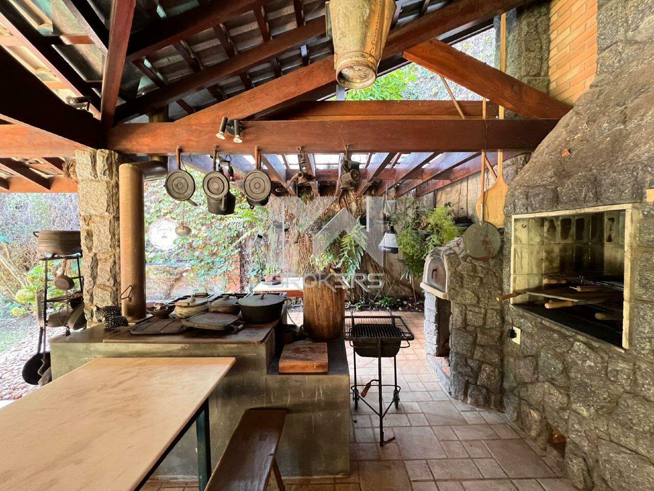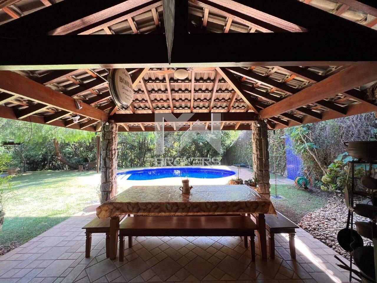 A diversão continua no exterior, com uma incrível área gourmet equipada com churrasqueira, fogão à lenha e forno de pizza. Desfrute de momentos relaxantes na piscina, enquanto admira o quintal arborizado. Além disso, a casa ainda possui uma edícula com dois dormitórios, banheiro, depósito e banheiro de serviço.