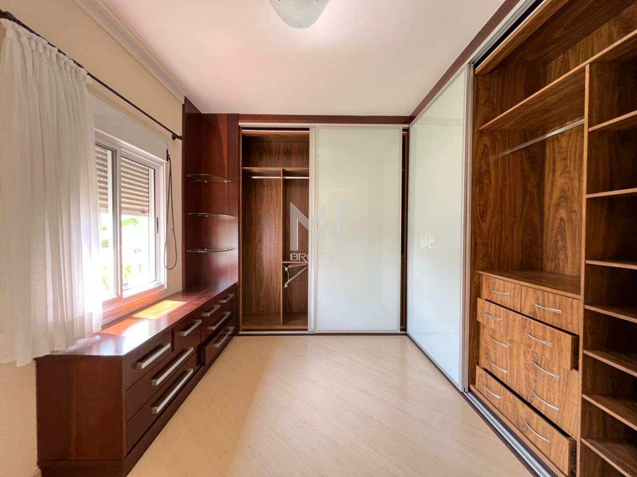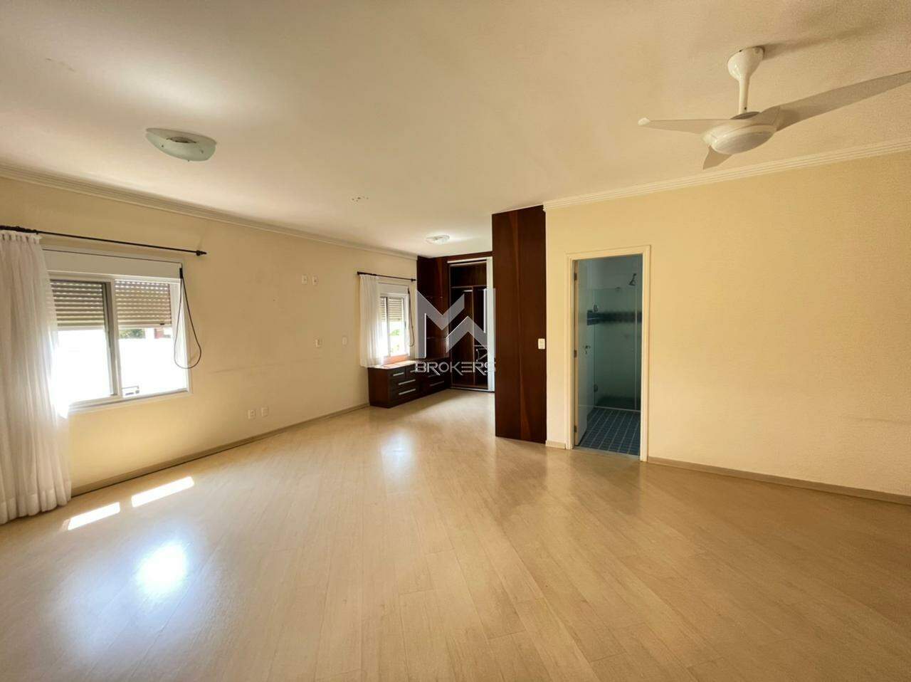 Sala 03 ambientes (TV, estar e refeições) em conceito aberto, lavabo, 04 dormitórios, todos suítes, sendo uma reversível para escritório, cozinha, despensa, espaço fitness, área gourmet com churrasqueira e forno de pizza à lenha, piscina com aquecimento solar, sauna seca e depósito.