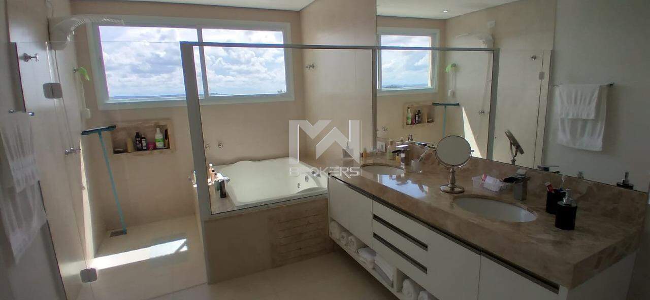 A suíte principal com closet,, banheiro com pia dupla e uma grande varanda que nos leva a uma linda vista panorâmica permanente da serra do Japi .