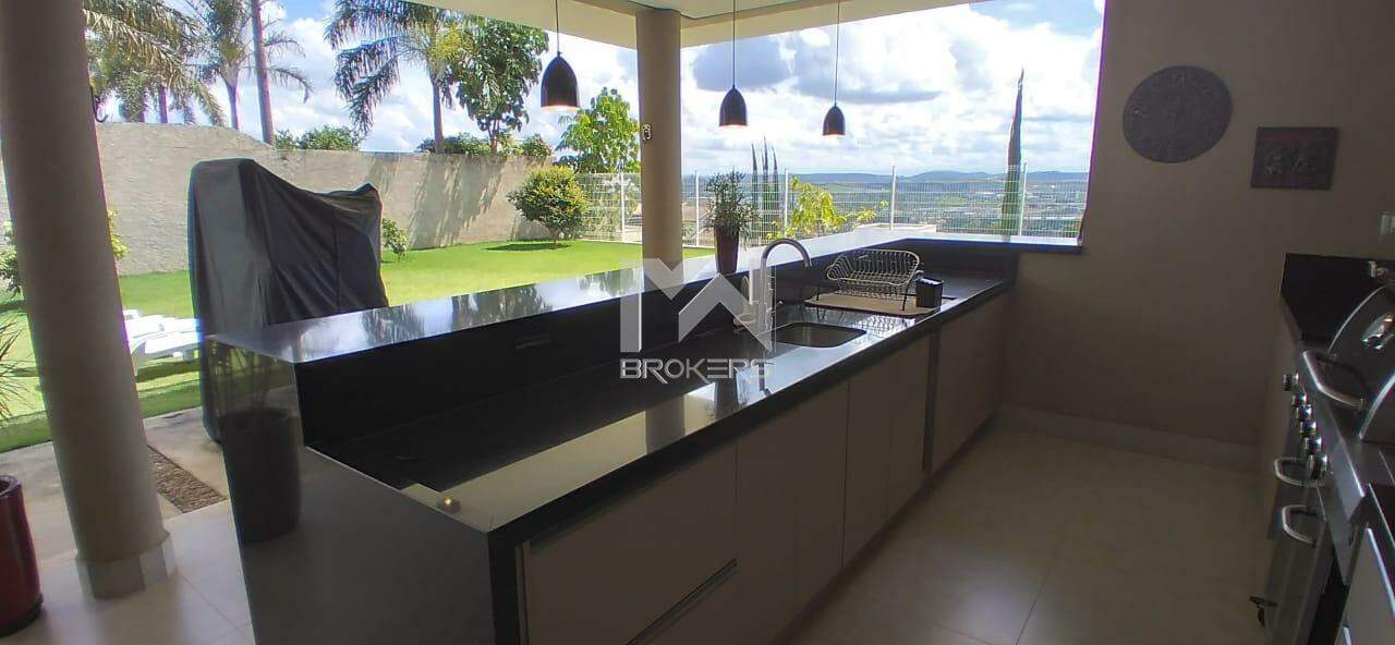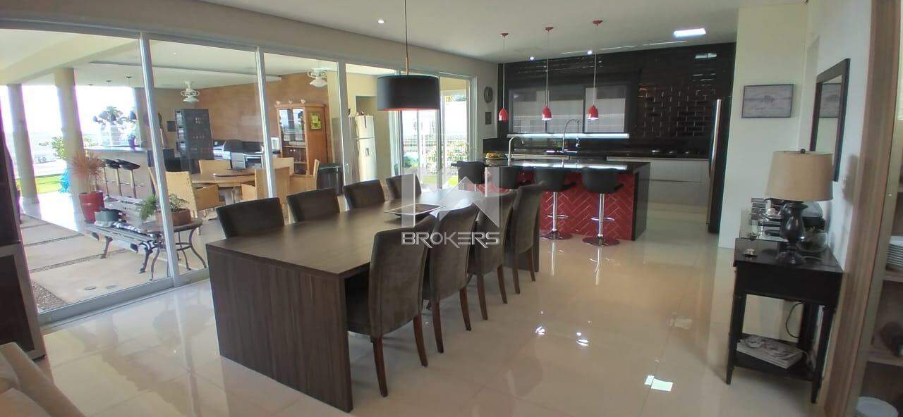 No pavimento térreo o imóvel em conceito aberto possui cozinha com armários planejados e ilha, sala de estar, sala de jantar e sala de TV com toda extensão envidraçada e integrada a área gourmet e ainda um amplo quintal gramado com árvores frutíferas.