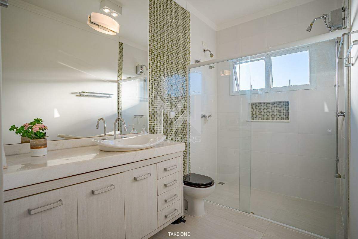 Salas de estar e de refeições integradas, com pé direito alto, escritório com ar condicionado, lavabo, cozinha, despensa, área de serviço e área íntima com 03 dormitórios, todos suítes, sendo a master com closet.