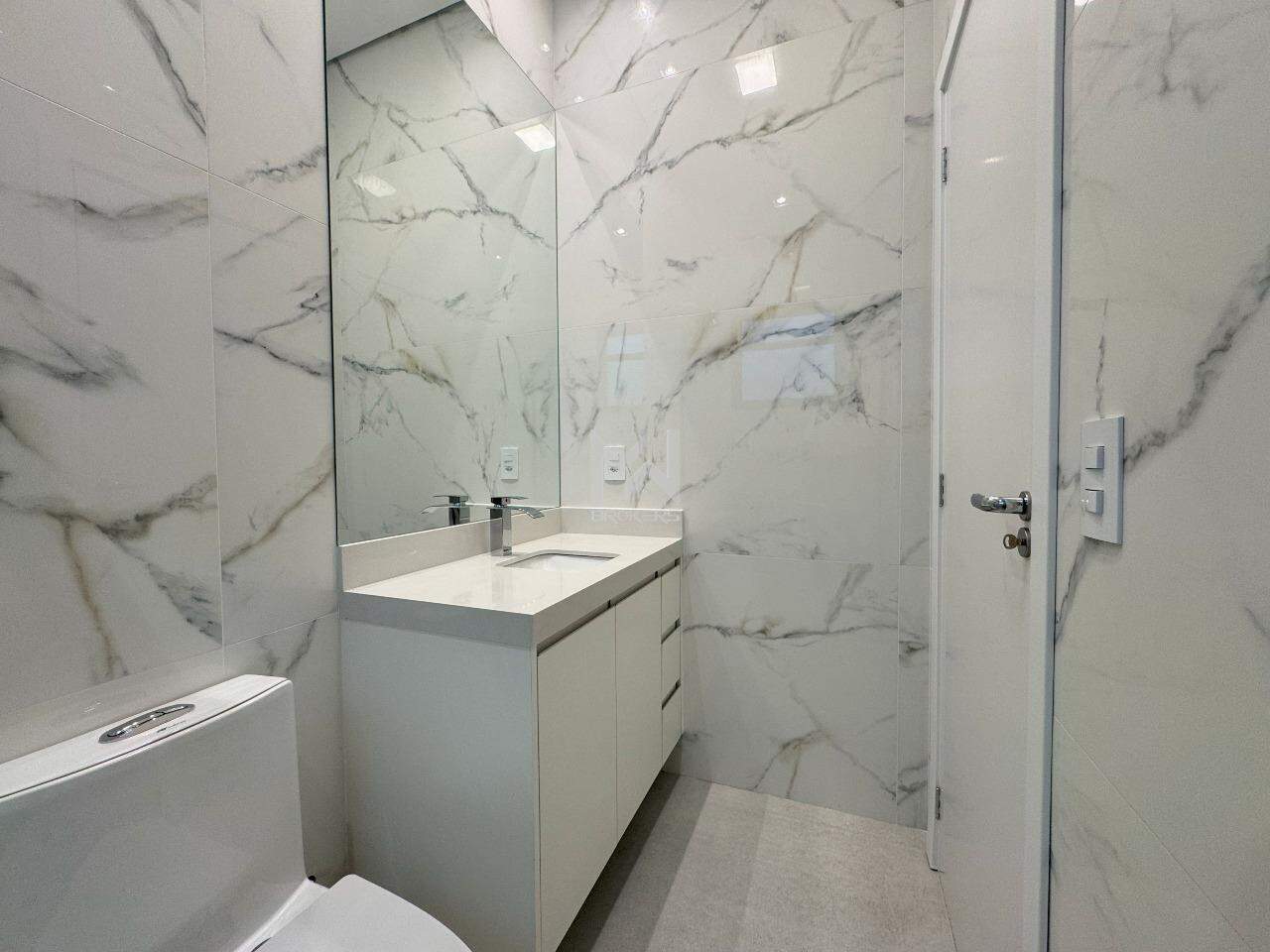 - Área gourmet completa com pia, churrasqueira a carvão, lavabo de apoio e integração com a piscina por meio de porta de vidro de correr;