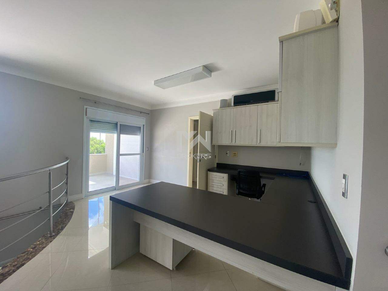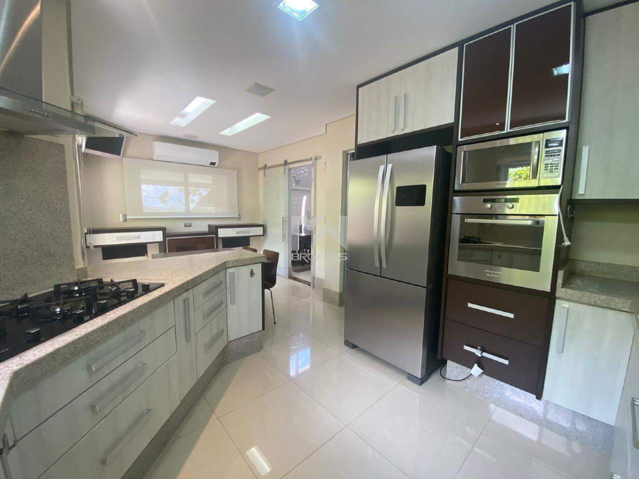 Sala dois ambientes com pé direito alto, sala de TV privativa com projetor, lavabo, cozinha planejada com sala de almoço, área de serviços. Área íntima com 03 suítes, sendo uma master com hidro e cuba dupla.