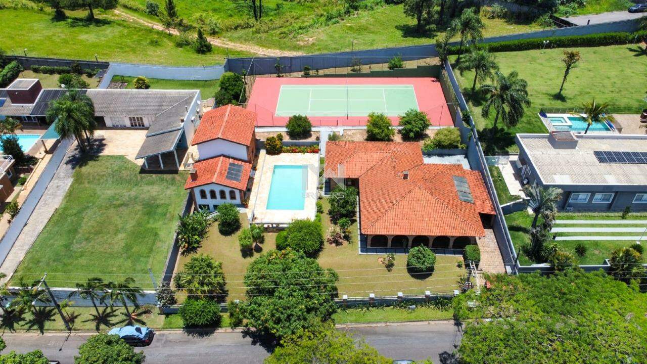 Com 4 dormitórios (1 suíte) na casa principal, piscina e quadra de tênis.